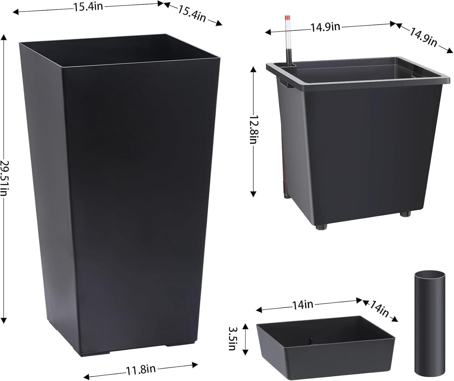 • Automic Watering System: Each tall black planters comes with built-in drainage holes and a sink to ensure that your greenery absorbs water smoothly and minimizes root rot. When the water level is low, the automatic watering system kicks in to provide your plants with the necessary moisture with minimal effort