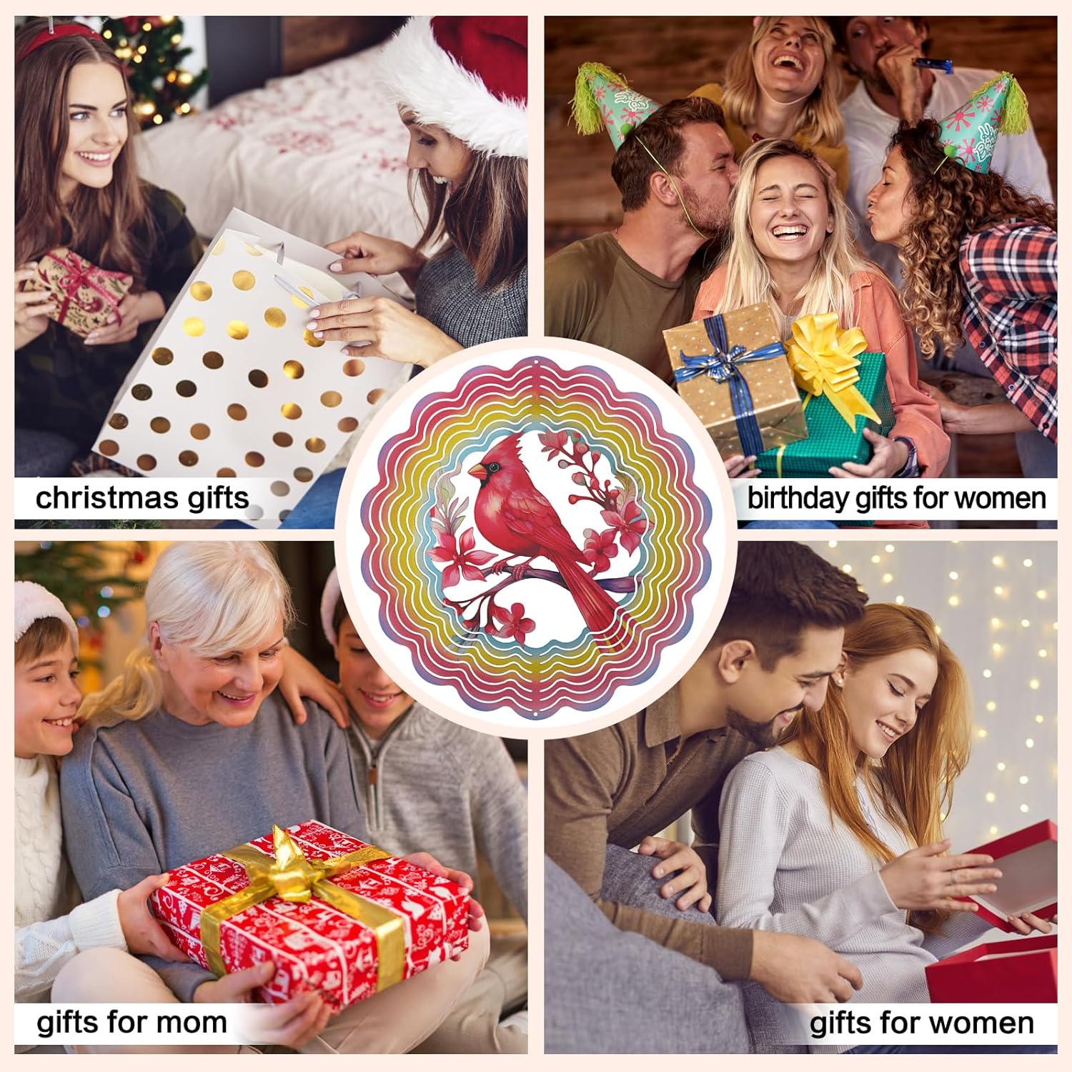 Wind Spinners Outdoor Cardinal Bird - Birthday Gifts for Women Mom Grandma, Hanging Wind Sculptures 12 inch 3D Wind Spinner for Garden Decor for Outside, Garden, Patio, Yard, Outdoor