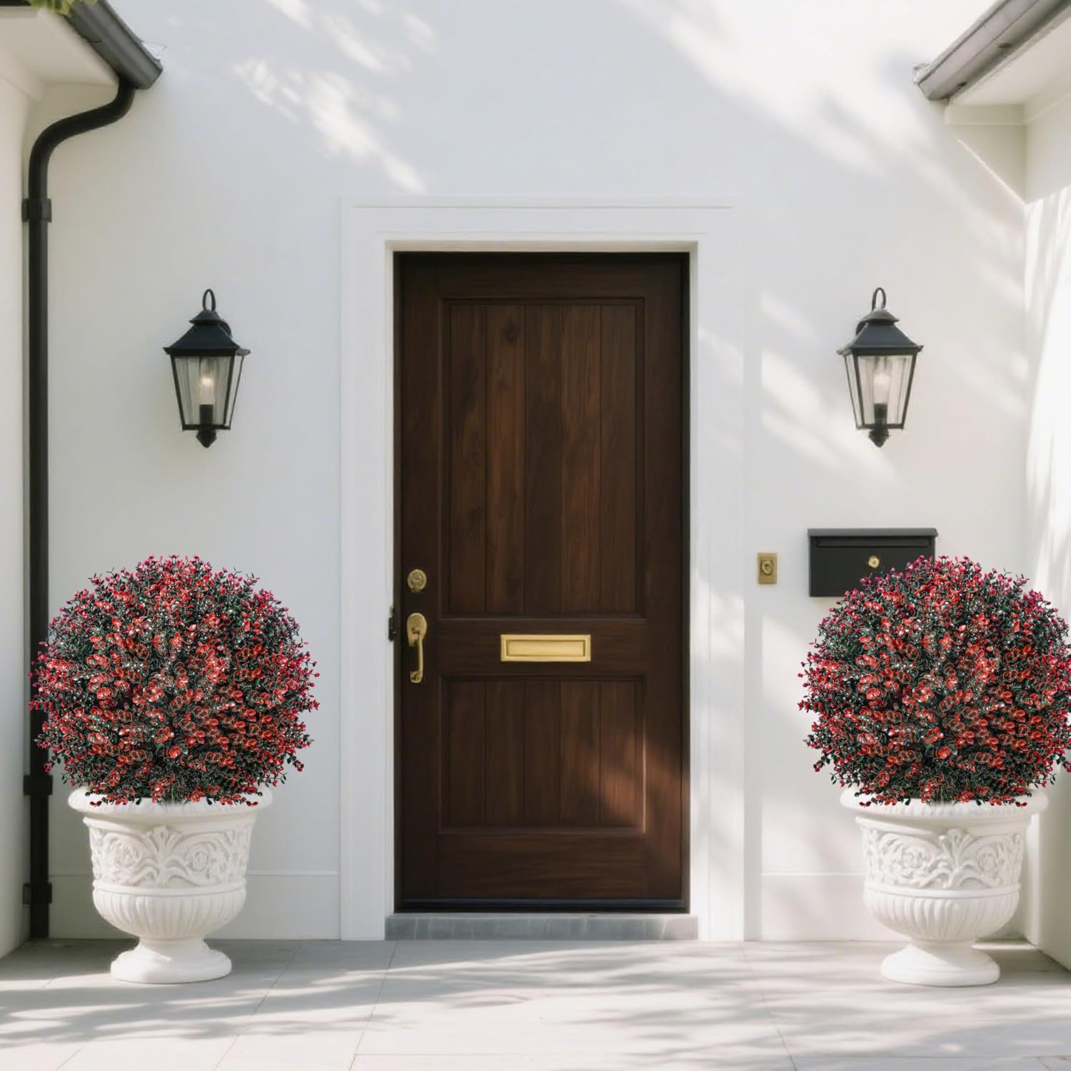 • 🌿Updated Material of Artificial Boxwood Ball Tree: Red+Green color more likes natural plants. UV resistant, fade-proof PE material,Size:17*24"(include 7"stake).Diameter:17".