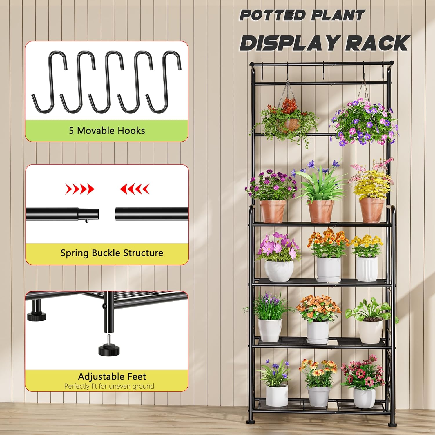 • LARGE CAPACITY & VERSATILE USE: This 68.4" Tall heavy-duty metal plant stand (27.2"L x 11.4"W) holds multiple flower pots, potted plants, storage bins, shoes, books, or ornaments. Perfect as an indoor plant stand or outdoor plant stand for patio, garden, balcony, living room, bedroom, or garage.