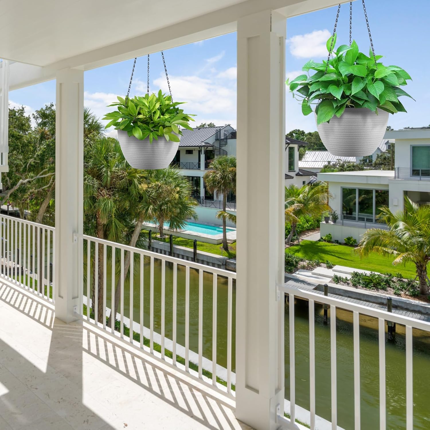 Hanging Planters for Indoor Outdoor Plants, Set of 2 Self Watering Hanging Pots with Drainage Hole & Plug and 20" Chain & Hooks