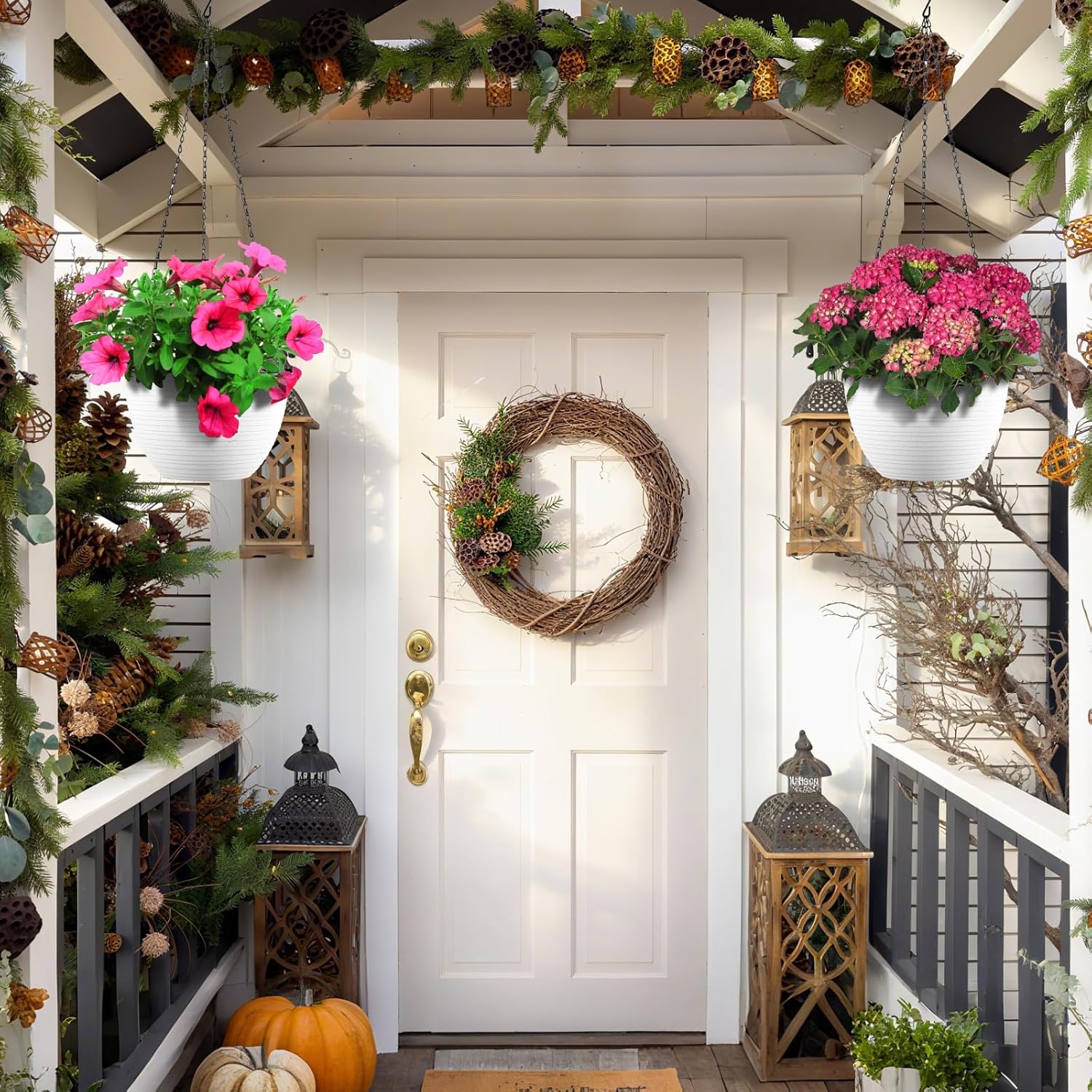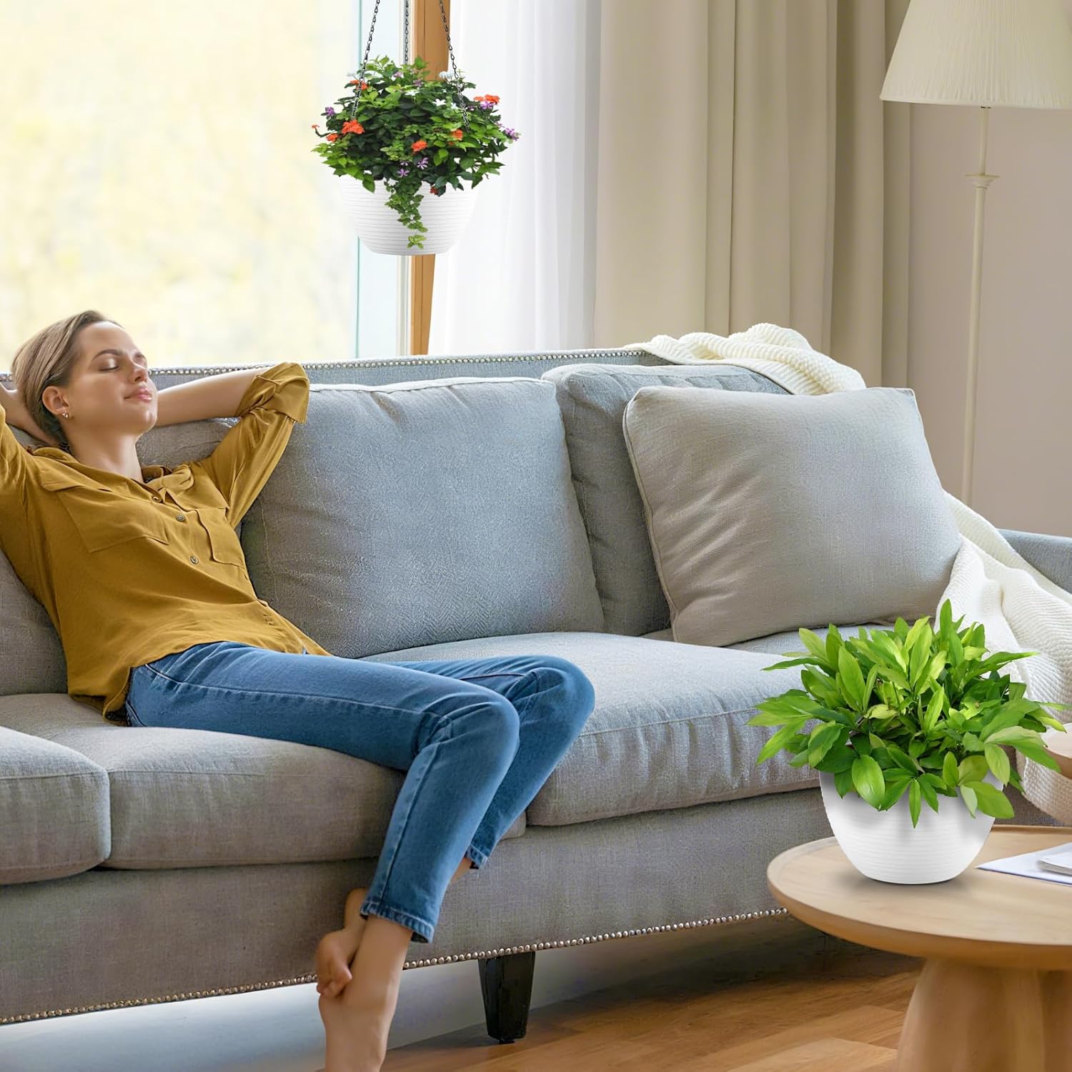 Hanging Planters for Indoor Outdoor Plants, Set of 2 Self Watering Hanging Pots with Drainage Hole & Plug and 20" Chain & Hooks