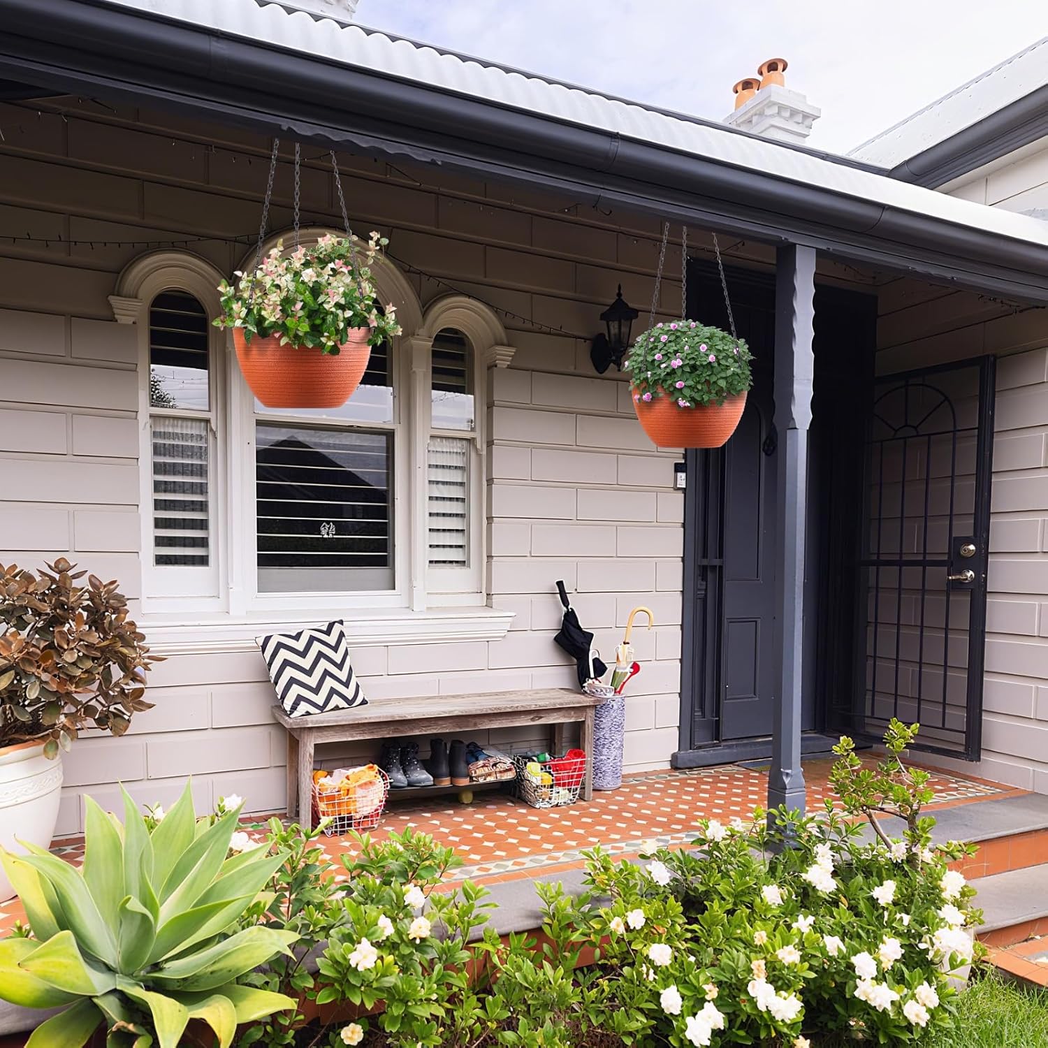 Hanging Planters for Indoor Outdoor Plants, Set of 2 Self Watering Hanging Pots with Drainage Hole & Plug and 20" Chain & Hooks