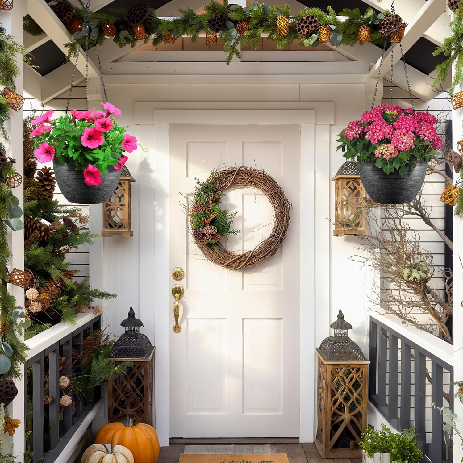 Hanging Planters for Indoor Outdoor Plants, Set of 2 Self Watering Hanging Pots with Drainage Hole & Plug and 20" Chain & Hooks