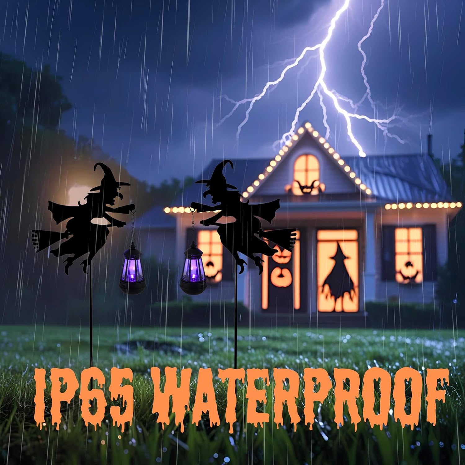 • 【 IP65 Waterproof Halloween Metal Yard Stakes 】Built for Halloween night and beyond, these holiday witch decorations are crafted from weather-resistant metal and fully waterproof, ensuring long-lasting use through rain or shine. Whether you're displaying a ghost, tombstone, or pumpkin decor, these lights hold up in any spooky setup.