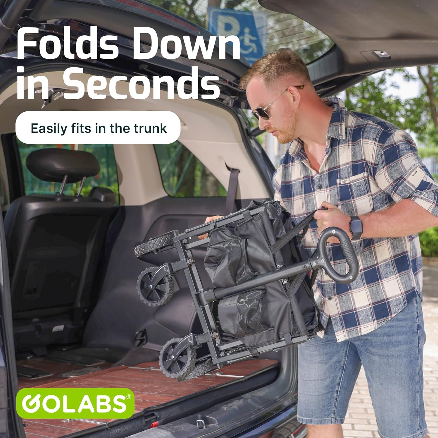 Golabs Collapsible Wagon Cart Max 350lb Load & Expandable Storage 100L, Double Bearing Design for Flexible Steering, Foldable Heavy Duty Garden Cart with 2 Cup Holders for Groceries, Garden & Camping