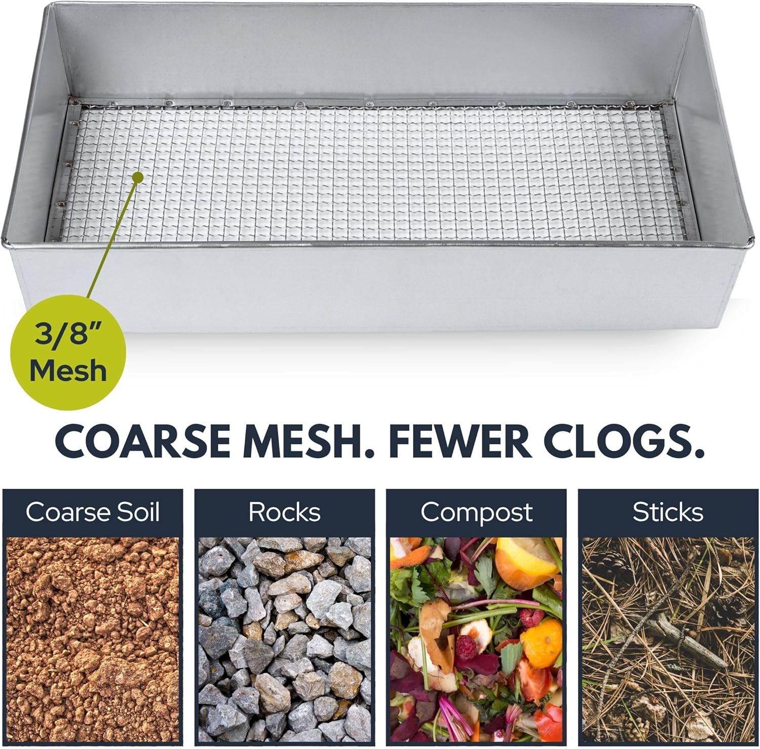 • CLEARS THE CHUNKY STUFF: 3/8" mesh lets through the good stuff, holds back the junk. Great for gravel, coarse soil, and compost with clumps and sticks