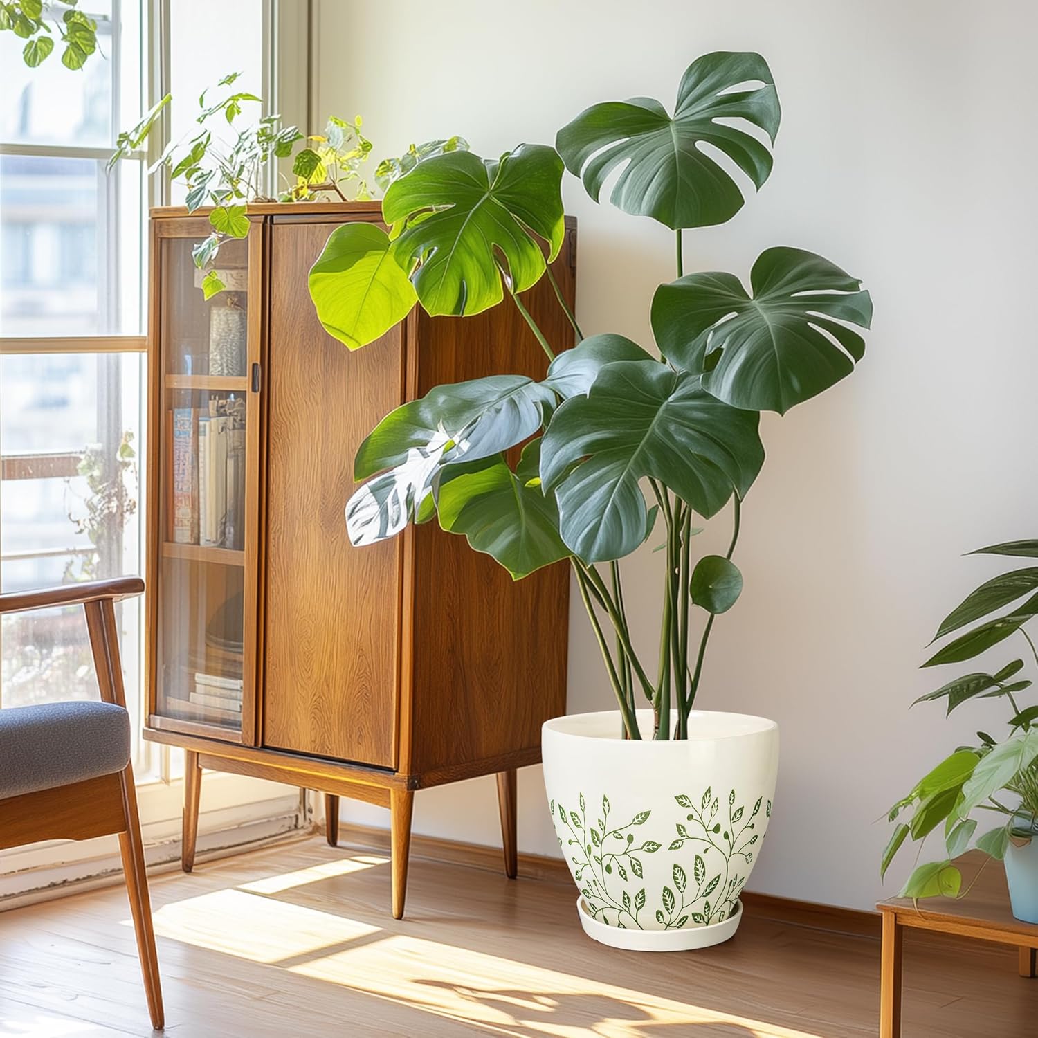 • Suitable for A Variety of Plants: This 10 inch plant pot ideal for indoor plants like olive tree, snake plant, money tree, zz plant, monstera, pothos, peace lily, palm, fiddle leaf fig, bird of paradise, pachira aquatica, and so on