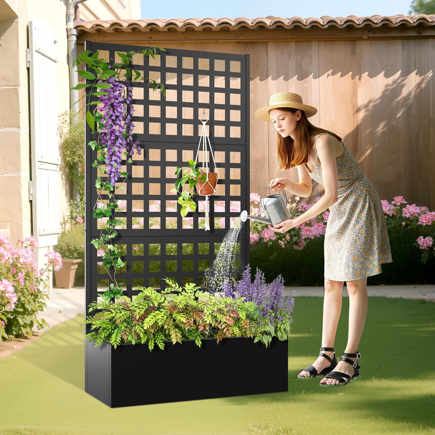 • 🛡️【Outdoor Privacy Screen & Metal Planter Box with Trellis】Use this metal planter box with trellis to create a natural divider on your patio, balcony, or yard. It’s more than just a garden raised bed for climbing plants—it’s also a beautiful metal planter with privacy screen that offers shade and separation. The sleek black frame and vertical lines of this metal planter box with trellis make it both decorative and practical.