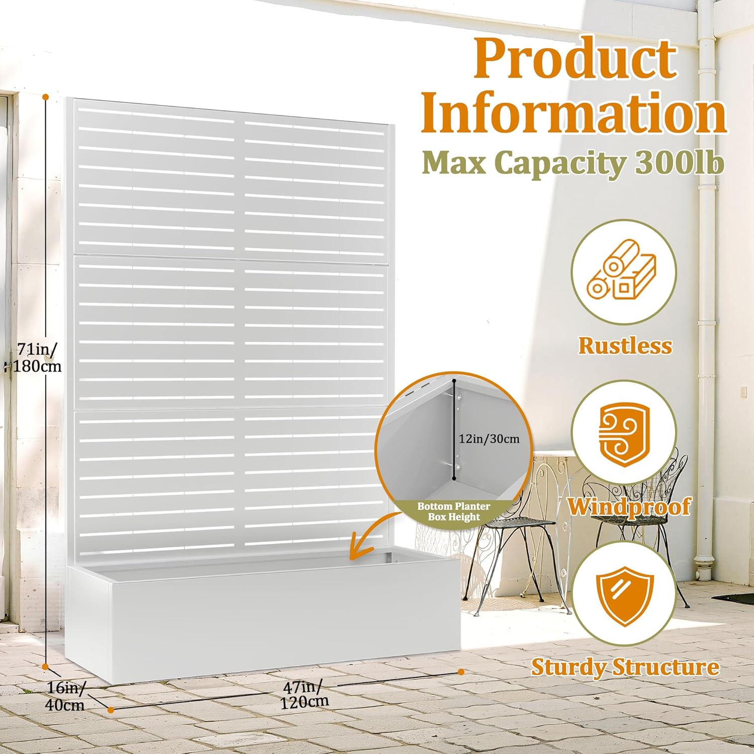 Metal Planter Box with Trellis, Heavy-Duty Raised Garden Bed for Climbing Plants, Drainage Hole, Outdoor Planter Box with Privacy Screen,47''L×16''W×71''H