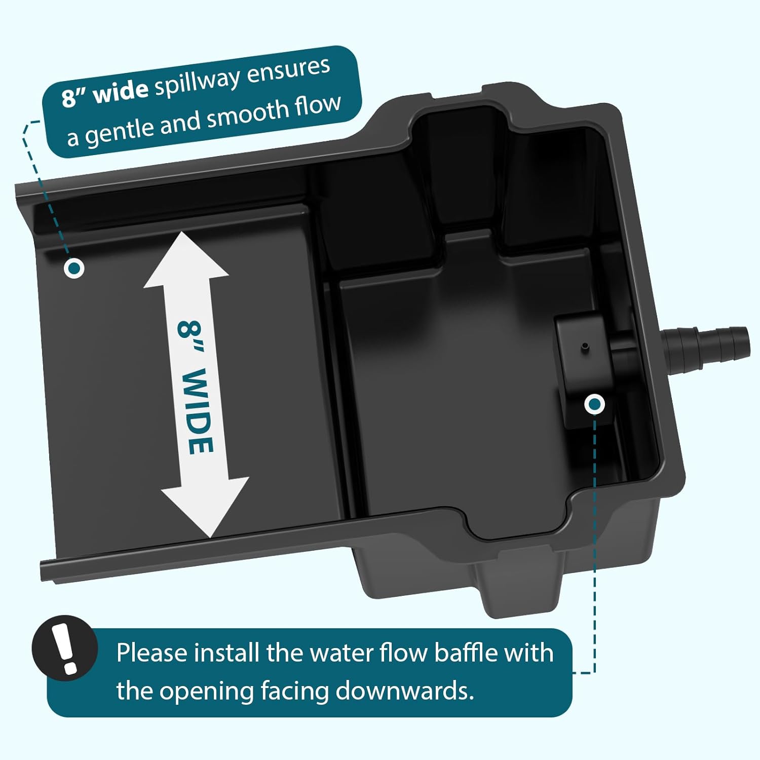 Buzzlett Waterfall Spillway with 8 inch Wide Weir, Smooth Flow Pond Waterfall Box, Easy Installation, Durable Construction, Long-Lasting for Outdoor, Ideal for Gardens, Pond Water Features and Streams