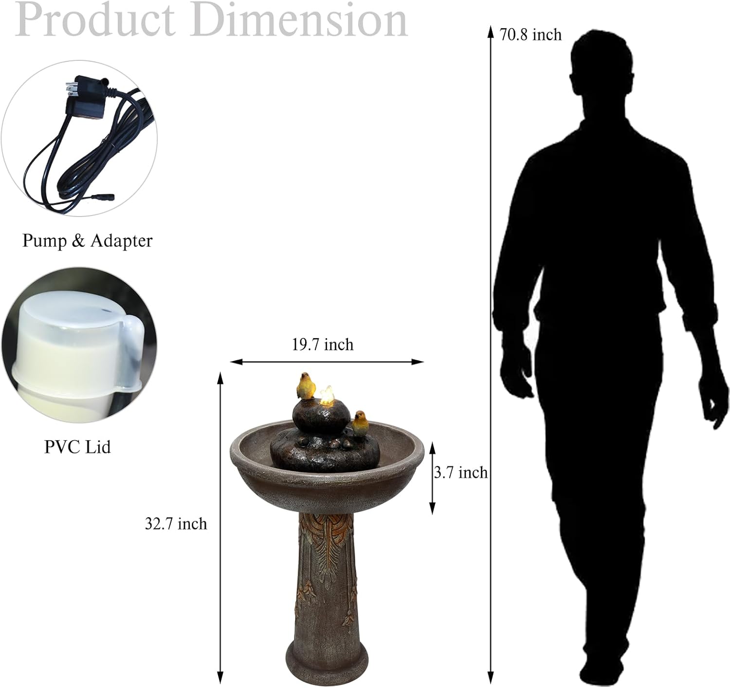 • Special Feature : Decorative Birds, Lighted, Stone-look Finish, Water Circulation, Weather Resistant