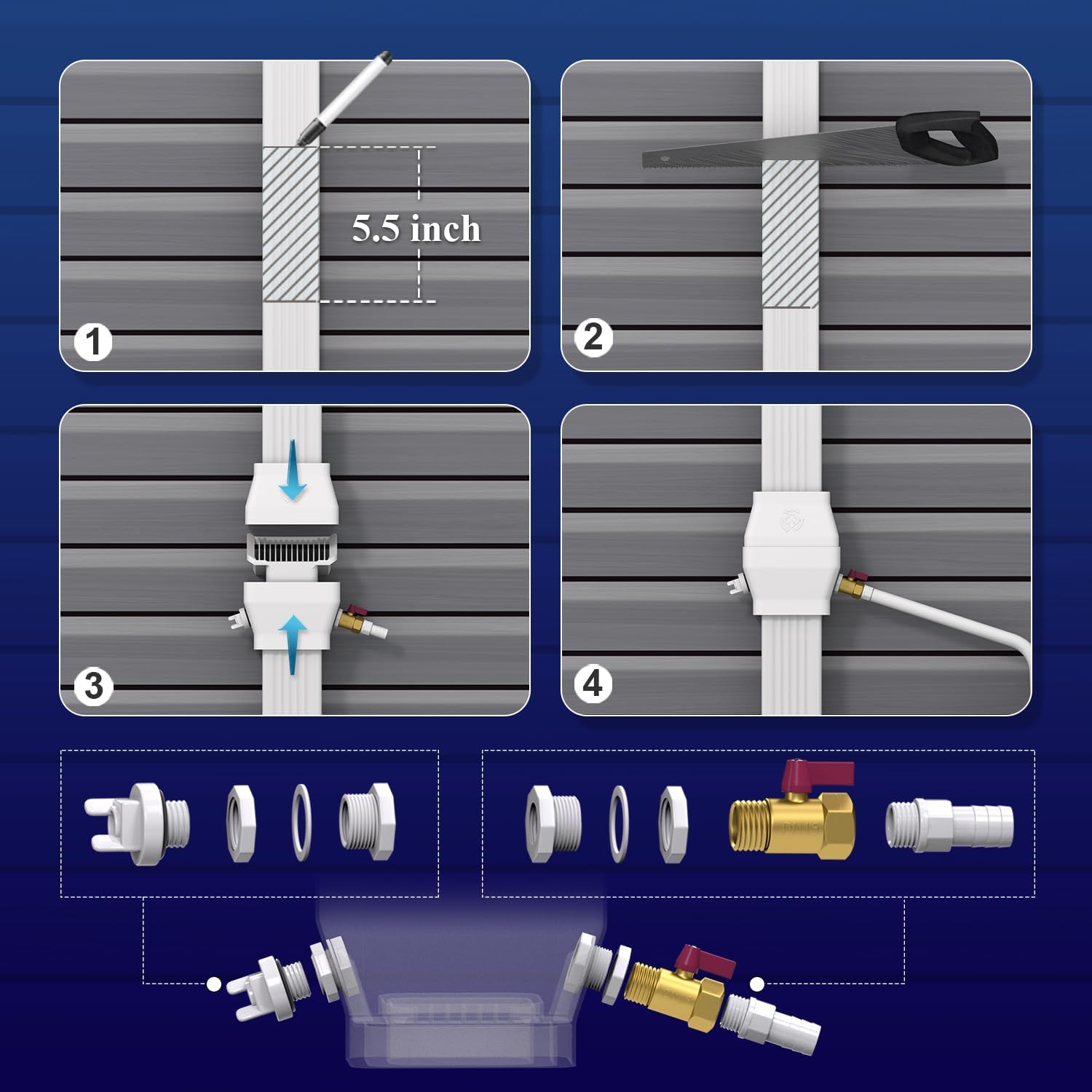 • Comes with a brass water valve kit, allowing you to stop the flow of water for winterizing or when the barrel is full.