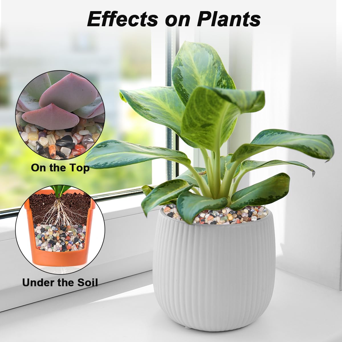 • 【Size and Quantity】The Outdoor/indoor Decorative Stones are packaged into 1 pound and 5 pounds and 10 pounds when they are packed. 1 lbs can cover about 2 pots around 6 inches.5 lbs can cover about 10 pots around 6 inches The size of the Outdoor/indoor Decorative Stones is about 0.4 inch.