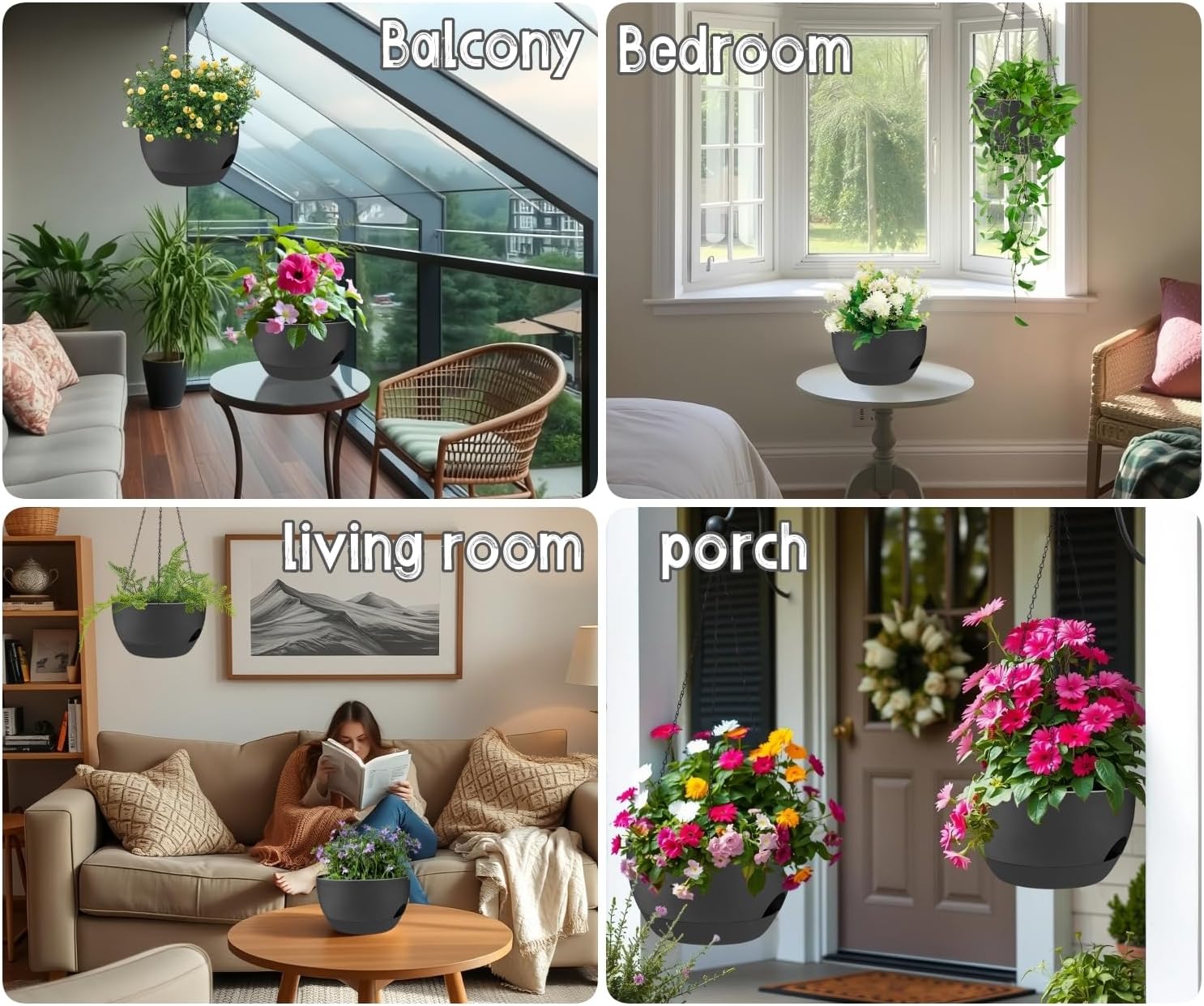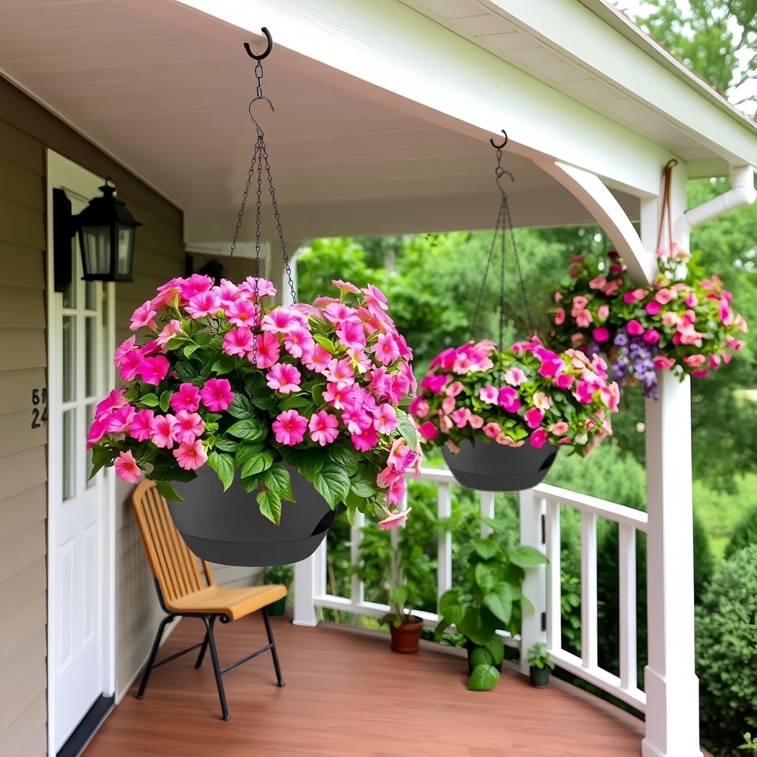 • ✅ 2 Large Self-Watering Planters: Double the value! Includes two 12-inch wide plastic hanging planters with built-in self-watering reservoirs to reduce the need for frequent watering and keep plants healthier.