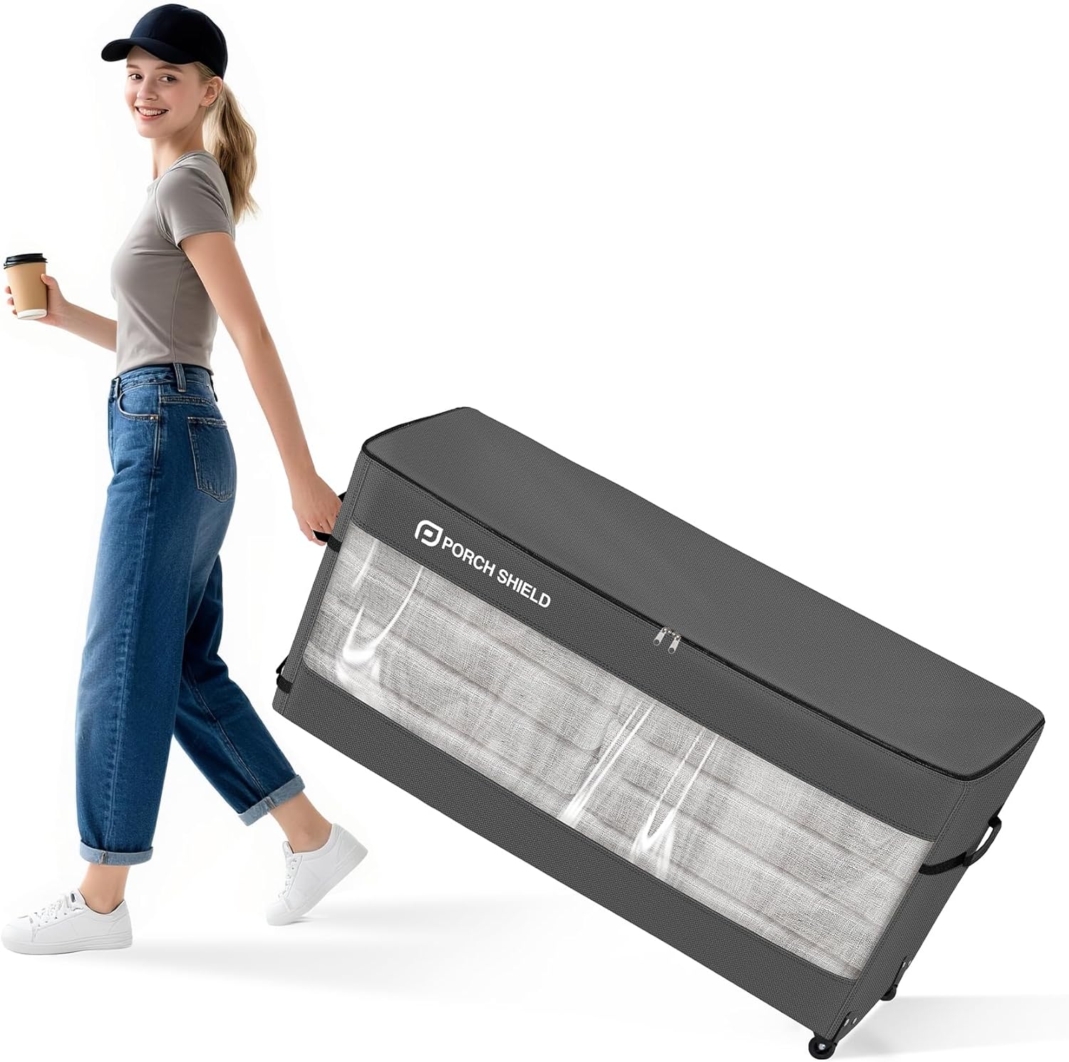Porch Shield Rolling Cushion Storage Bag with Wheel - Heavy Duty Large Container for Furniture Pillow 9 Ft Tree Christmas 62" L x 20" W x 28" H