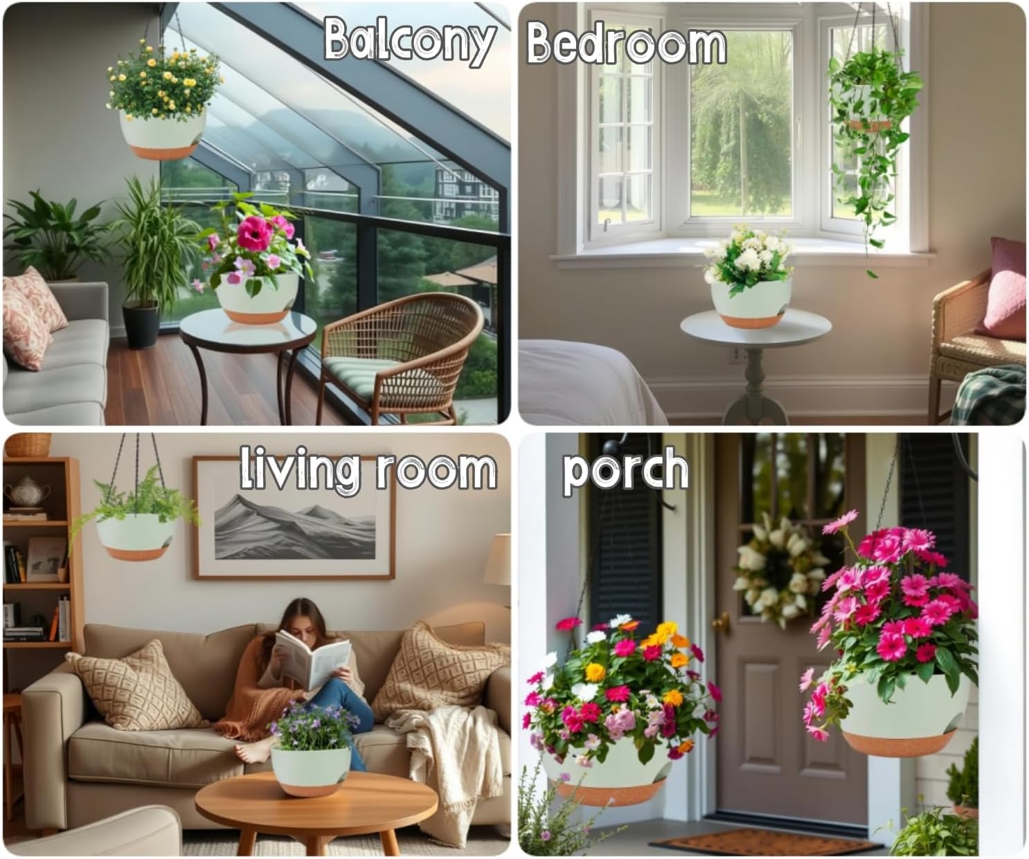 • ✅ 2 Large Self-Watering Planters: Double the value! Includes two 12-inch wide plastic hanging planters with built-in self-watering reservoirs to reduce the need for frequent watering and keep plants healthier.