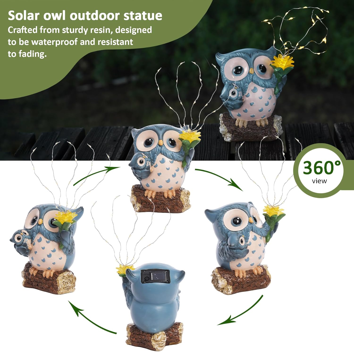 Solar Garden Statues Outdoor Decor, Fairy Owl Statue Garden Decor, Resin Yard Decorations Outdoor for Patio, Porch, Balcony, Lawn Ornaments, House Warming Birthday Gifts for Mom Women Grandma