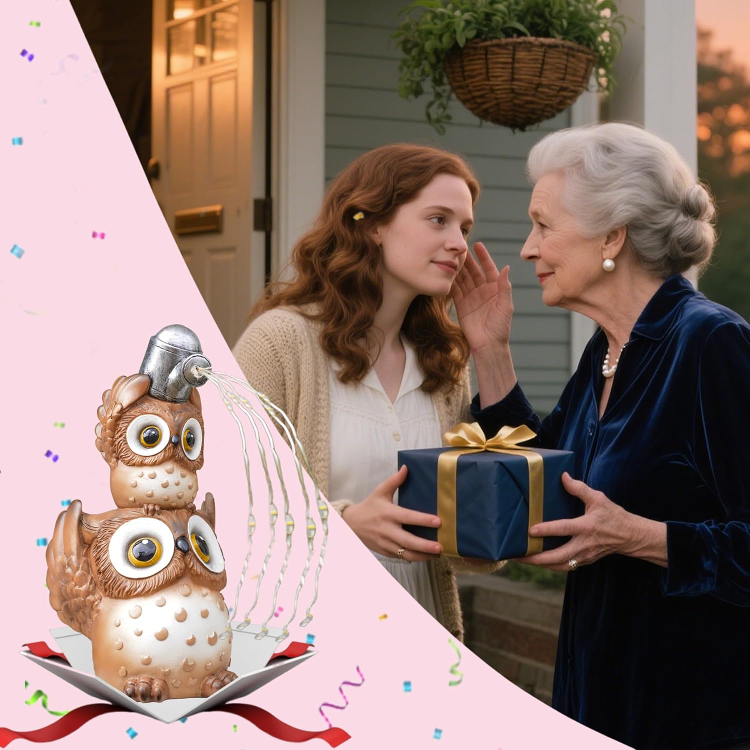 • Funny Owl Garden Statues:Charming owl decor feature a mother owl lifting her baby to water plants, adding warmth and joy to any outdoor space. The twinkling lights mimic flowing water cascading over flowerbeds and lawns, creating a magical effect. Perfect garden decorations for patios, porches, yards, balconies, fences, or walkways, enhancing your outdoor garden decor.