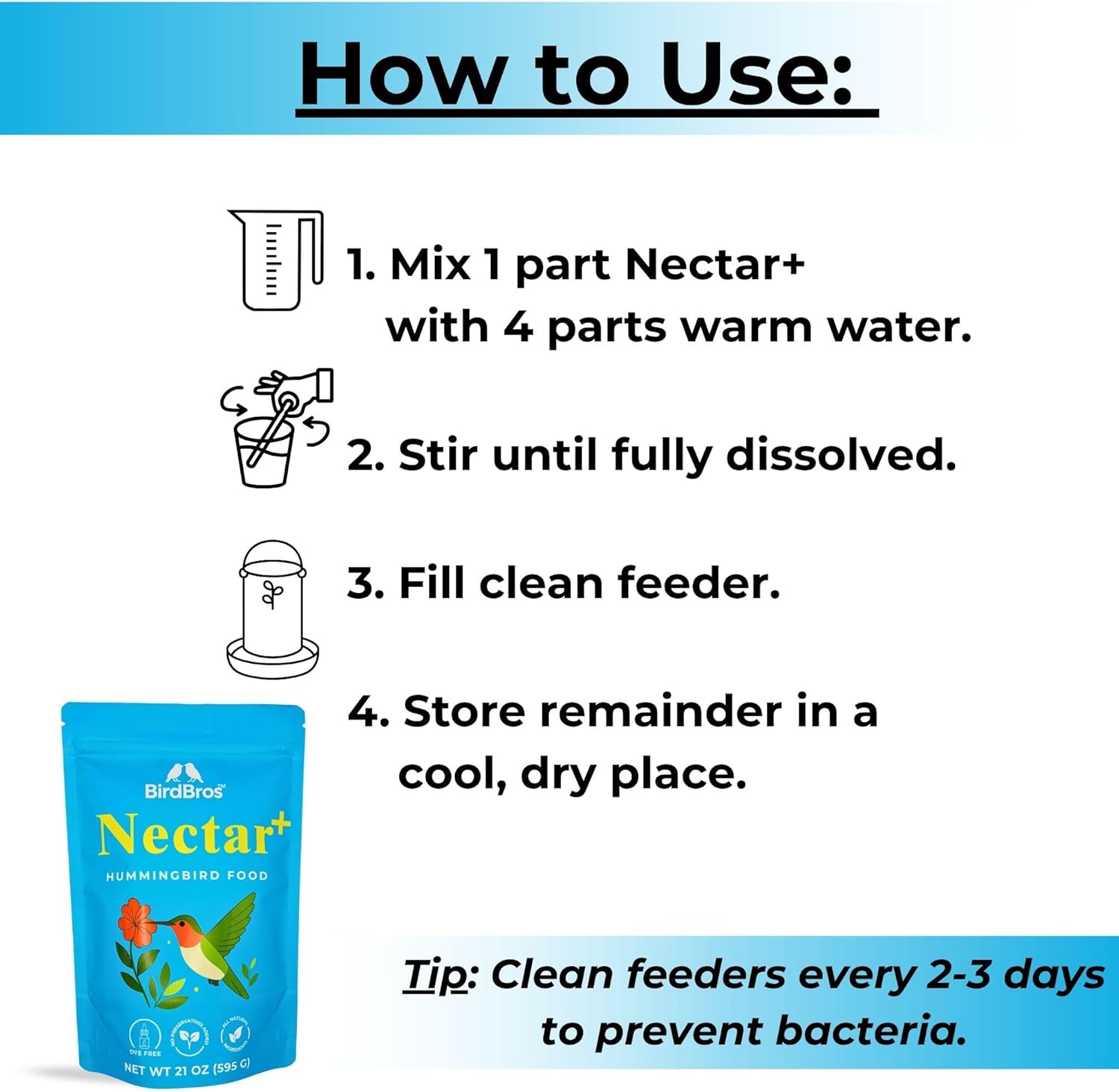 • Made in the USA – Family-Owned Brand: Produced in small batches by BirdBros, Nectar+ is proudly made in the USA. Our family-owned business is dedicated to delivering high-quality hummingbird food you can trust.