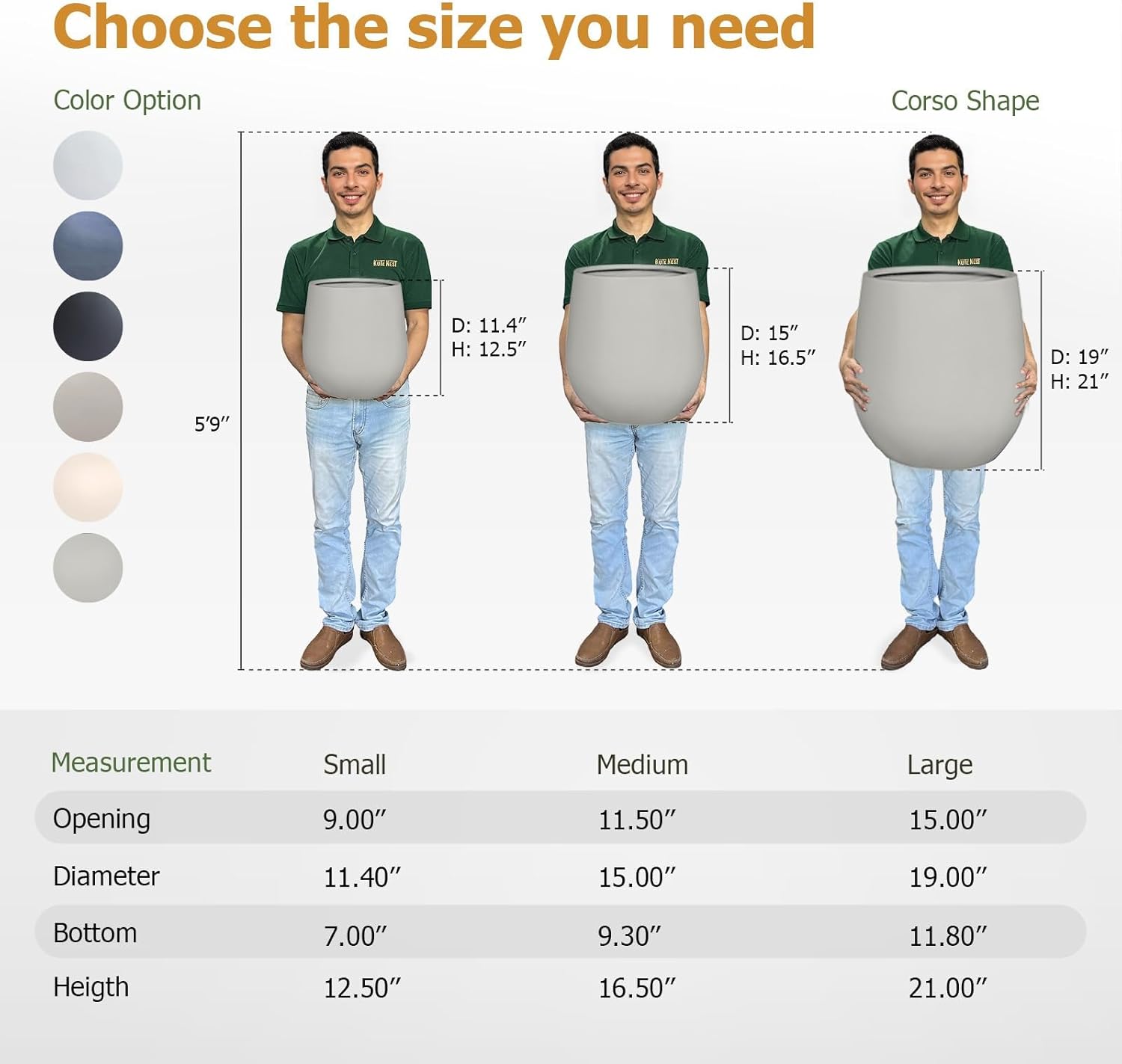 • Small Planter: 11.4"D x 12.5"H (9" Pot Opening)