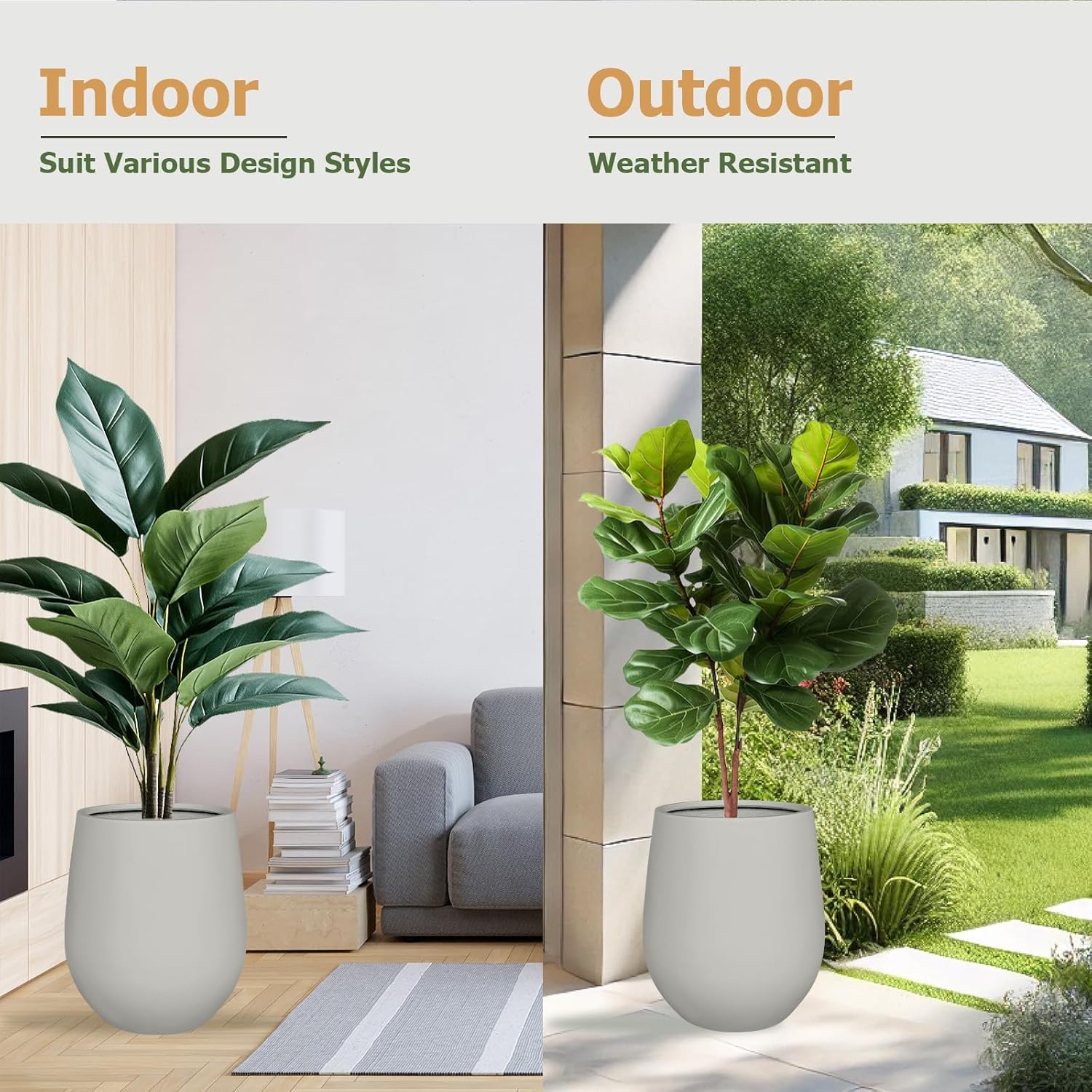 • π•π„π‘π’π€π“πˆπ‹π„ 𝐔𝐒𝐀𝐆𝐄 & πŒπ”π‹π“πˆ-𝐒𝐇𝐀𝐏𝐄 πƒπ„π’πˆπ†π: These planters for indoor plants come in multiple sizes and shapes, perfect for houseplants like olive trees, monstera, or spruce. These fiberglass planters also vary in color, including black planter pots, taupe planters, and white planter pots for your preference.