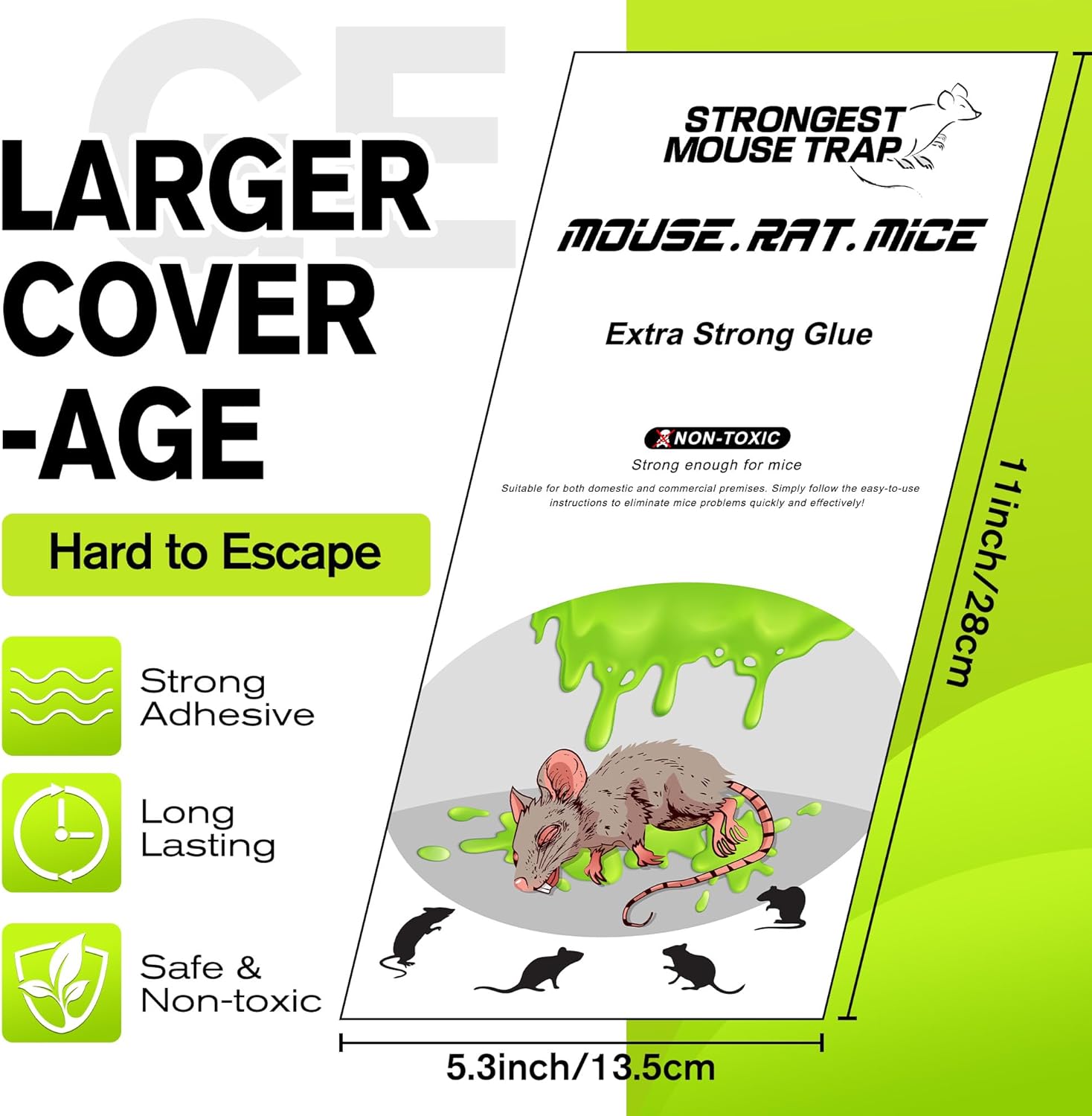 • [Huge Sticky Trap Nowhere to Run]Each mouse glue traps measures 11 x 5.3 inches/ 28 x 13.5 cm, larger than standard traps covering more area to catch more rodents in one go. The extended surface increases the catch rate and reduces escape chances