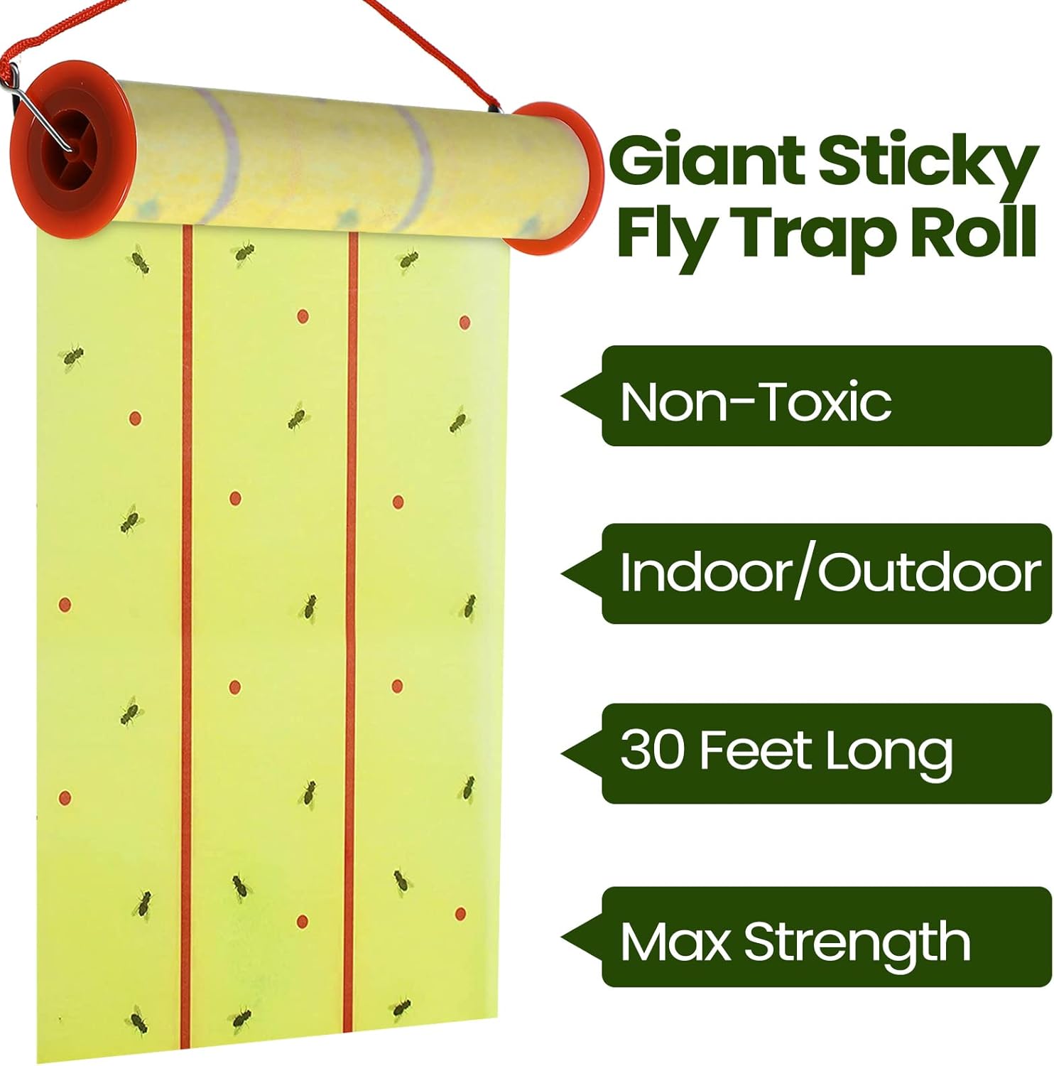 Qualirey Giant Sticky Fly Traps,30 Feet Fly Strips for Indoor Outdoor Hanging Flying Tapes Non Toxic Ribbon Fruit Gnat Killer for Mosquito Plants House Horse Stable (Yellow,1 Pcs)