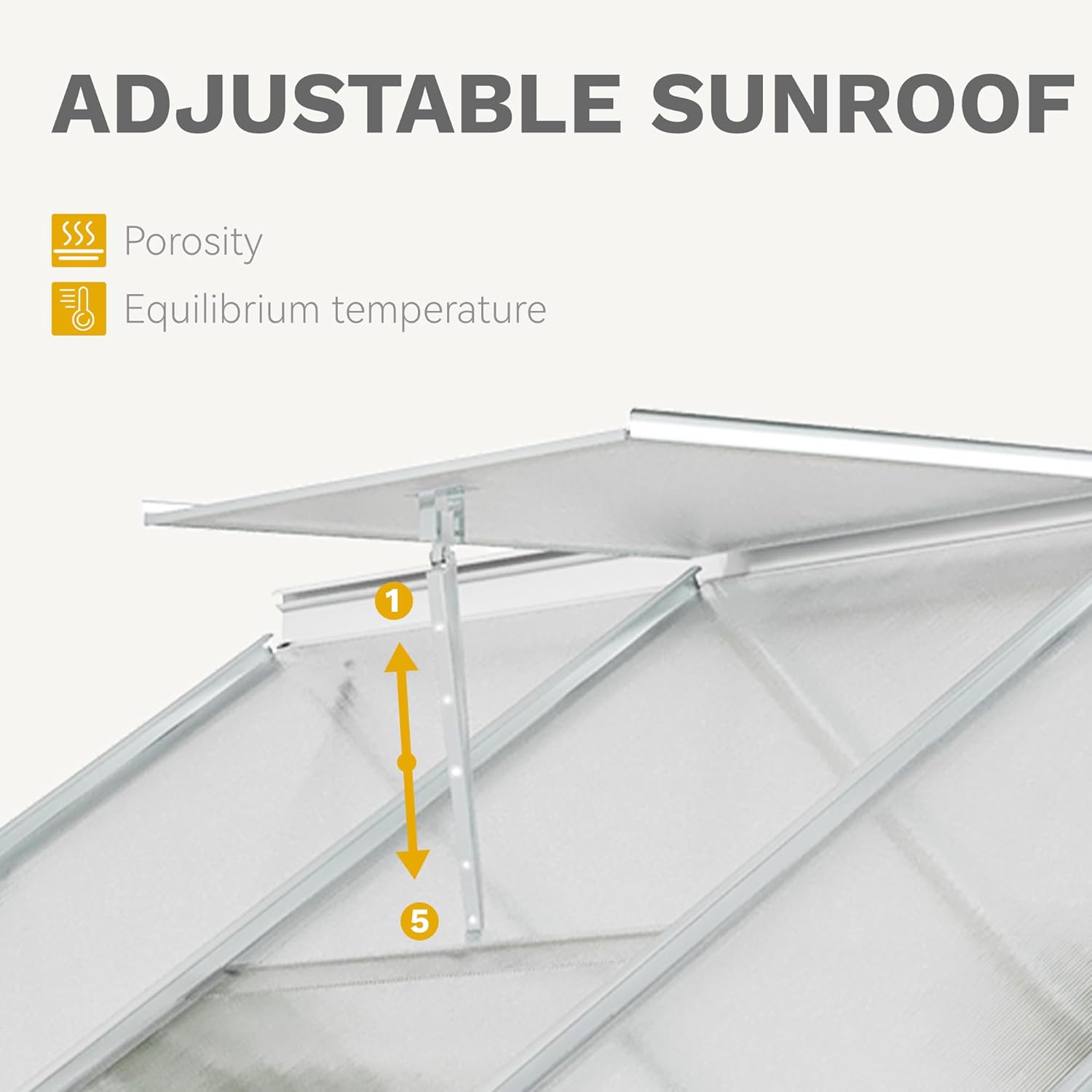 • SKYLIGHT ADJUSTMENT- This heavy duty green house features two adjustable skylights with various opening angles available, creating optimal air circulation system to sustain indoor ventilation and cooling; Innovative sliding door allows for seamless opening and closing, and saves more space than traditional ones