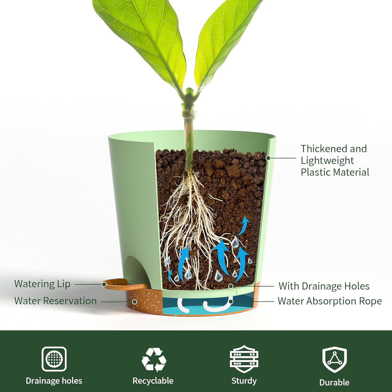 • Stylish Home & Garden Decor: Featuring a minimalist design, these self watering pots add a touch of elegance to any space, including windowsills, patios, kitchens, and offices. Great as gifts for plant lovers.