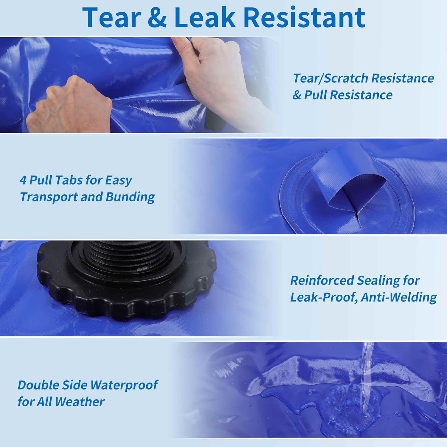 • [Reliable Quality] This water storage bag adopt with reliable nylon silk with a 1000D double-sided PVC, lightweight for portable carry. The interface and port have high frequency welded seal and reinforced seam, with high density coating aim for no leakage, ensure the reliable water storage for emergency and daily use.