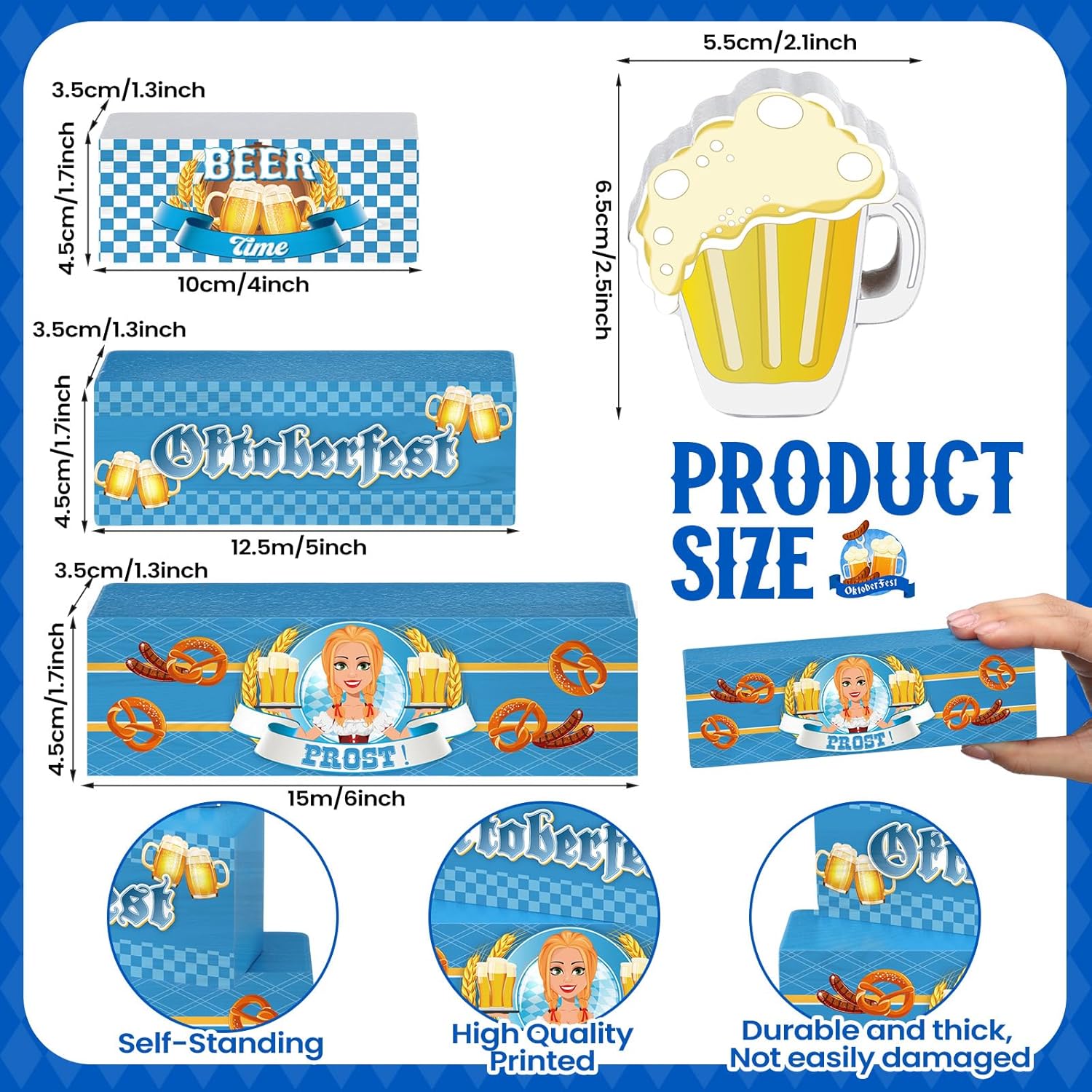 • Celebrate Oktoberfest Decorations: our Oktoberfest table centerpieces incorporate elements such as classic blue and white checkered patterns, beer mugs, pretzels, and the vibrant "Oktoberfest" word, all of which are vivid tributes to Oktoberfest; The carefully crafted wooden decorations add a touch of Oktoberfest fun to any room