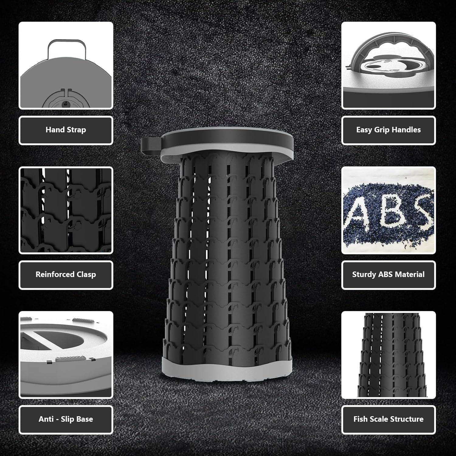 Upgraded Collapsible Stool with Max Load Capacity 330lbs Portable Telescoping & Folding Design Retractable Seat for Camping, Gardening, Fishing & Outdoor Adventures (Grey)
