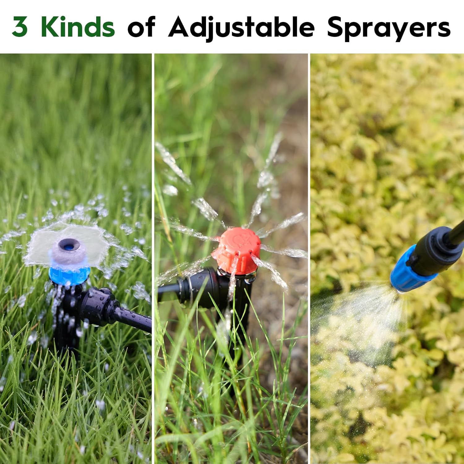 • Easy to Install and Built to Last: This Irrigation Kit is easy to install. Just cut the tube, connect the nozzle or drip emitters to the fitting and turn on the faucet to start the plant drip irrigation system. Drip Irrigation Sprinkler heads are removable and easy to clean, so you don't have to worry about clogging, making them perfect for long-term use.