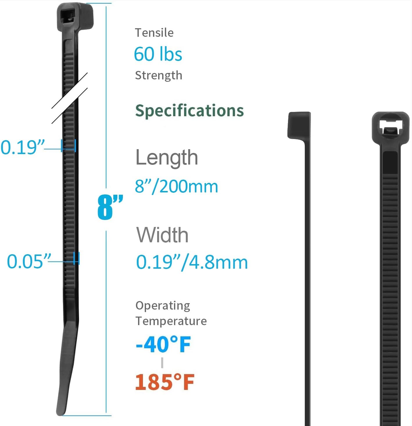 • ★【Great Design】Self-locking fastener design, sturdy and durable, easy to operate. The width of our cable tie is 0.18inch/4.8mm, which makes the cable tie stronger than the same size cable tie on the market and tensile strength could handles most purpose of binding in life.