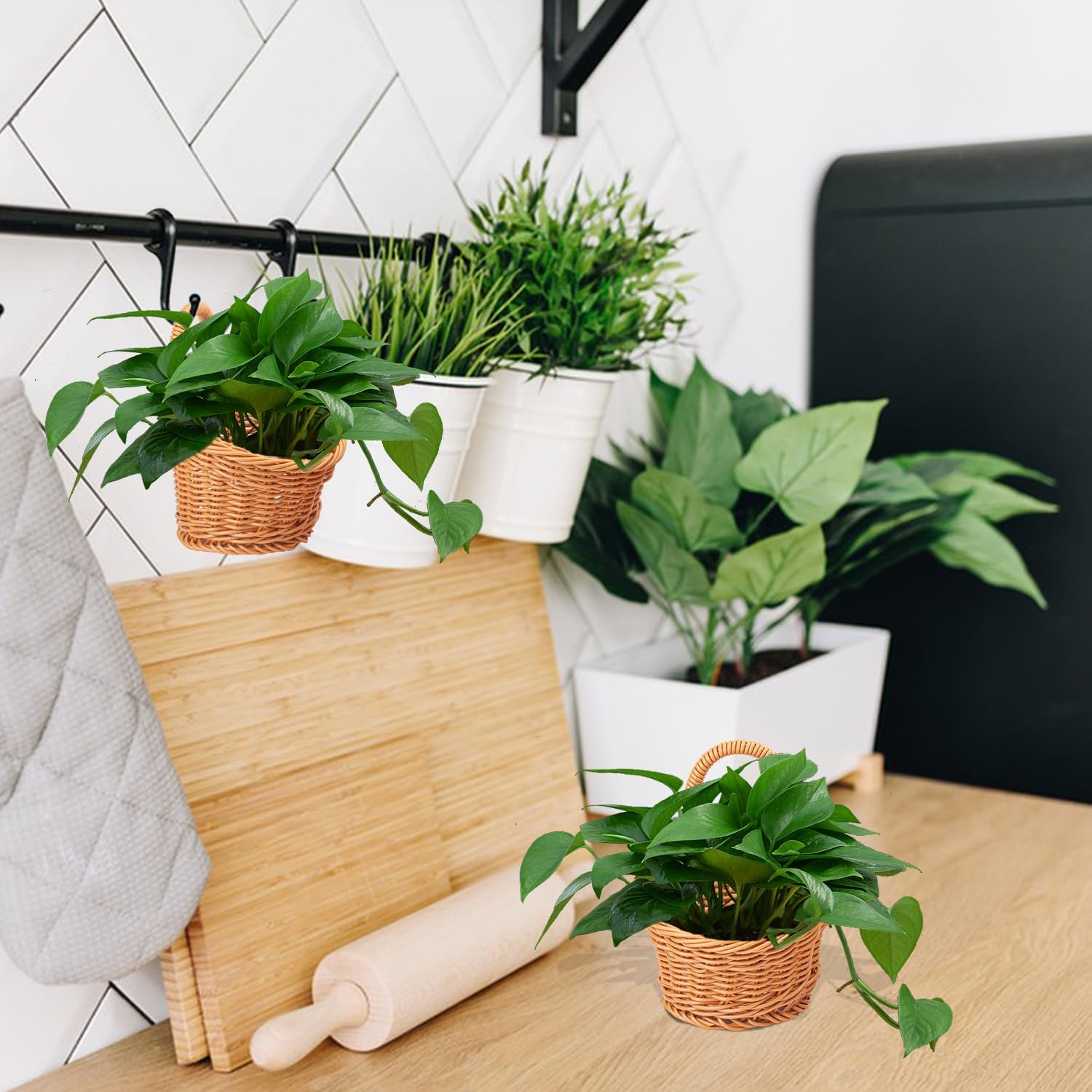 • 【Durable Construction: 】Made from high-quality plastic, these Plastic Woven Wall Hanging Basket mimic the look of wicker but offer superior durability and resistance to moisture and deformation.