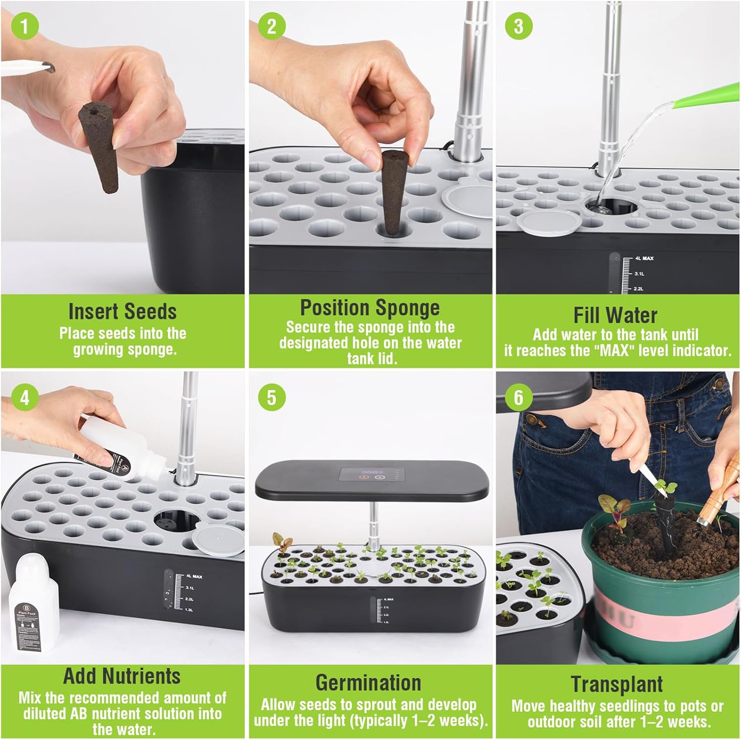 • 📏Adjustable Height Grow Light & Large Water Tank: The grow light can be raised as your plants grow, ensuring optimal light exposure without crowding. A 4L spacious water tank reduces refill frequency and supports longer growth cycles, making plant care simple and low-maintenance.