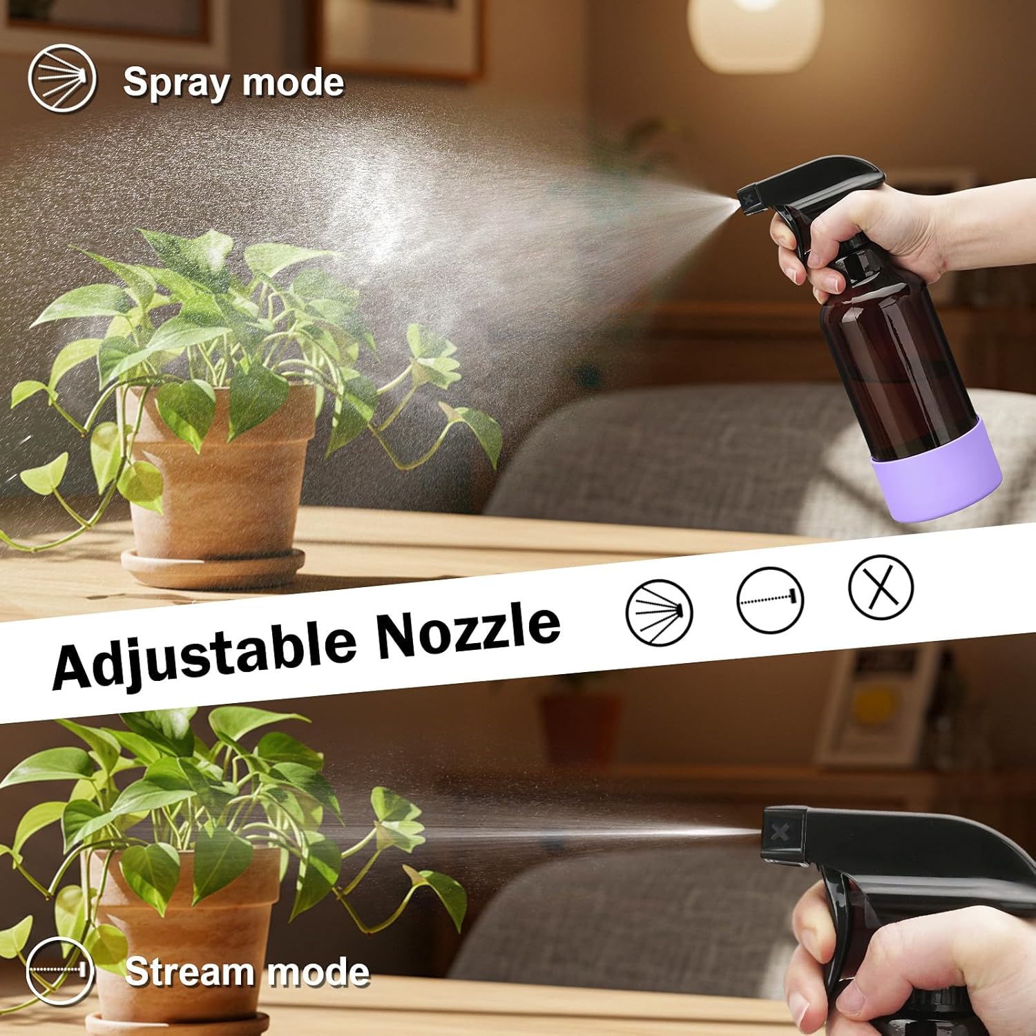 Glass Spray Bottles with Silicone Sleeve 16.9oz 2 Pack Empty Spray Bottle for Hair Mist/Stream Spraying for Cleaning Solutions, Plants, Essential Oils (Brown-qblue&purple)