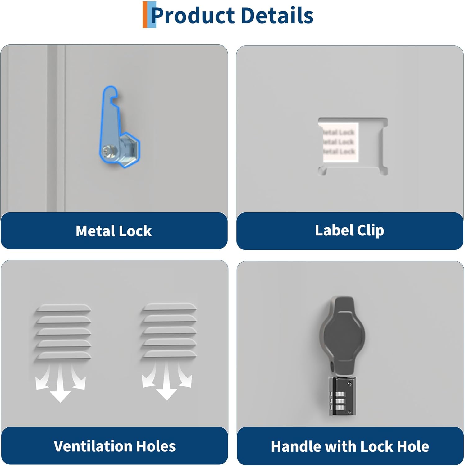 • Ventilated Design: Each metal locker door is equipped with built-in louvers that promote airflow, reducing moisture and odors to keep stored items dry and fresh