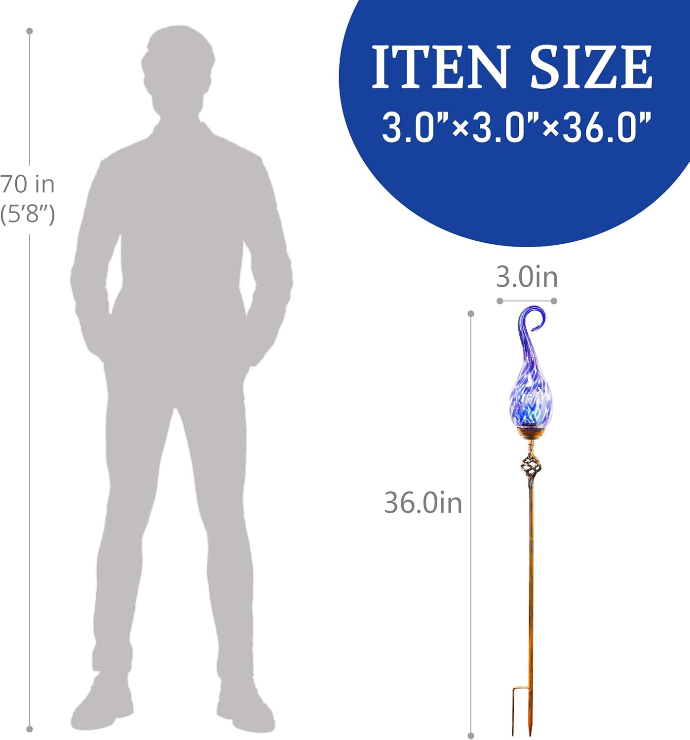 • HANDCRAFTED GLASS DURABLE: Our decorative plant stakes are made of beautiful and intricate color infused by hand blown glass, UV treated to prevent fading, and are designed with a striking metal tip for added elegance and resistance to outdoor elements; Our premium materials ensure our decorative stakes are able to withstand a wide range of outdoor weather conditions