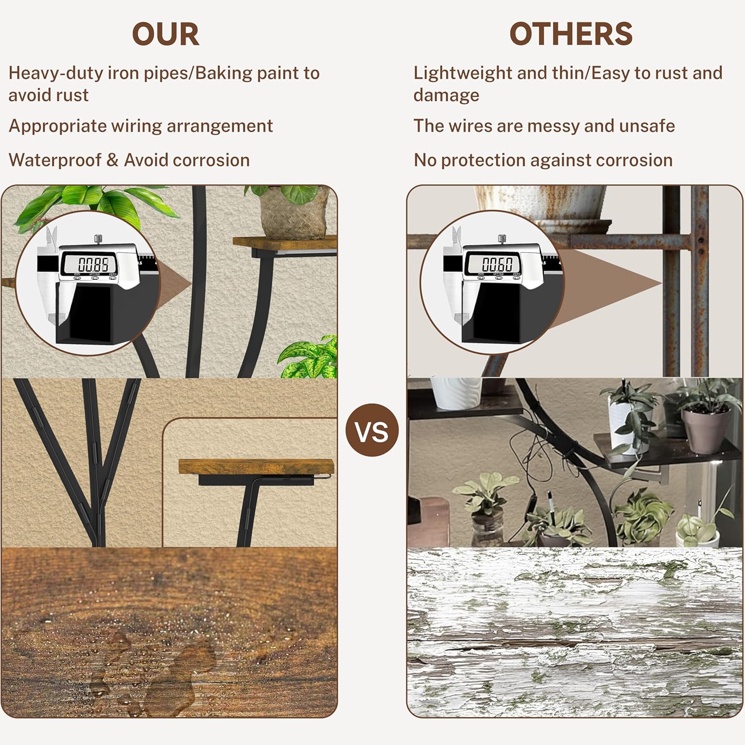 • 【Easy Installation】We have provided you with the appropriate wrench and screwdriver. Combined with the manual, it will help you complete the installation easily. For homes with kids or pets, included furniture straps provide extra stability, keeping your tall plant stand secure and safe.