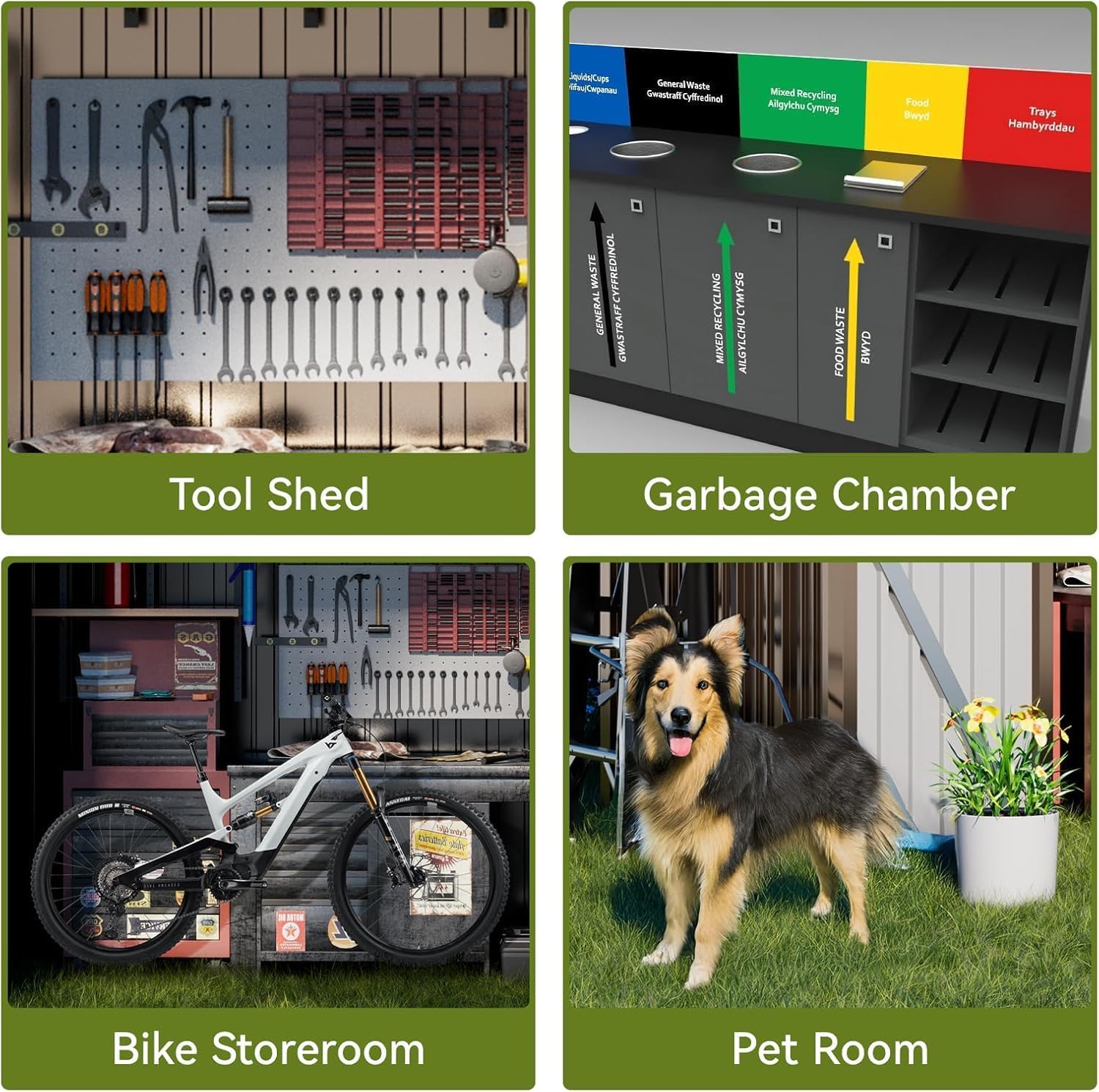 • Outdoor Shed:This storage shed is made of high-quality galvanized steel and covered with a powder-coated finish.Its durable construction ensures that it can withstand harsh weather conditions and ensure your items remain safe
