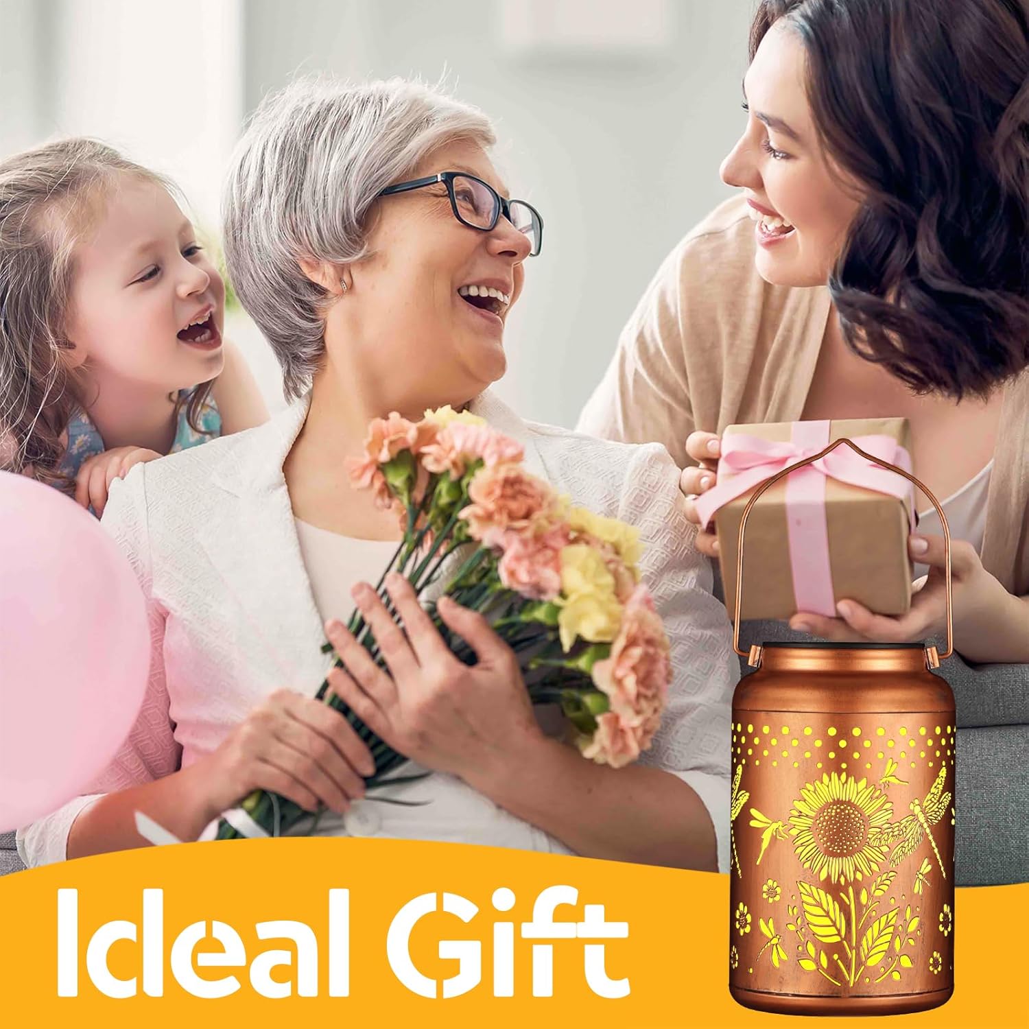 2 Pack Solar Lanterns Outdoor Waterproof, Dragonflies Garden Decor Gifts for Women Mom Grandma Hanging Solar Lights Metal Decoration Outside for Yard, Pati(Sunflowers)