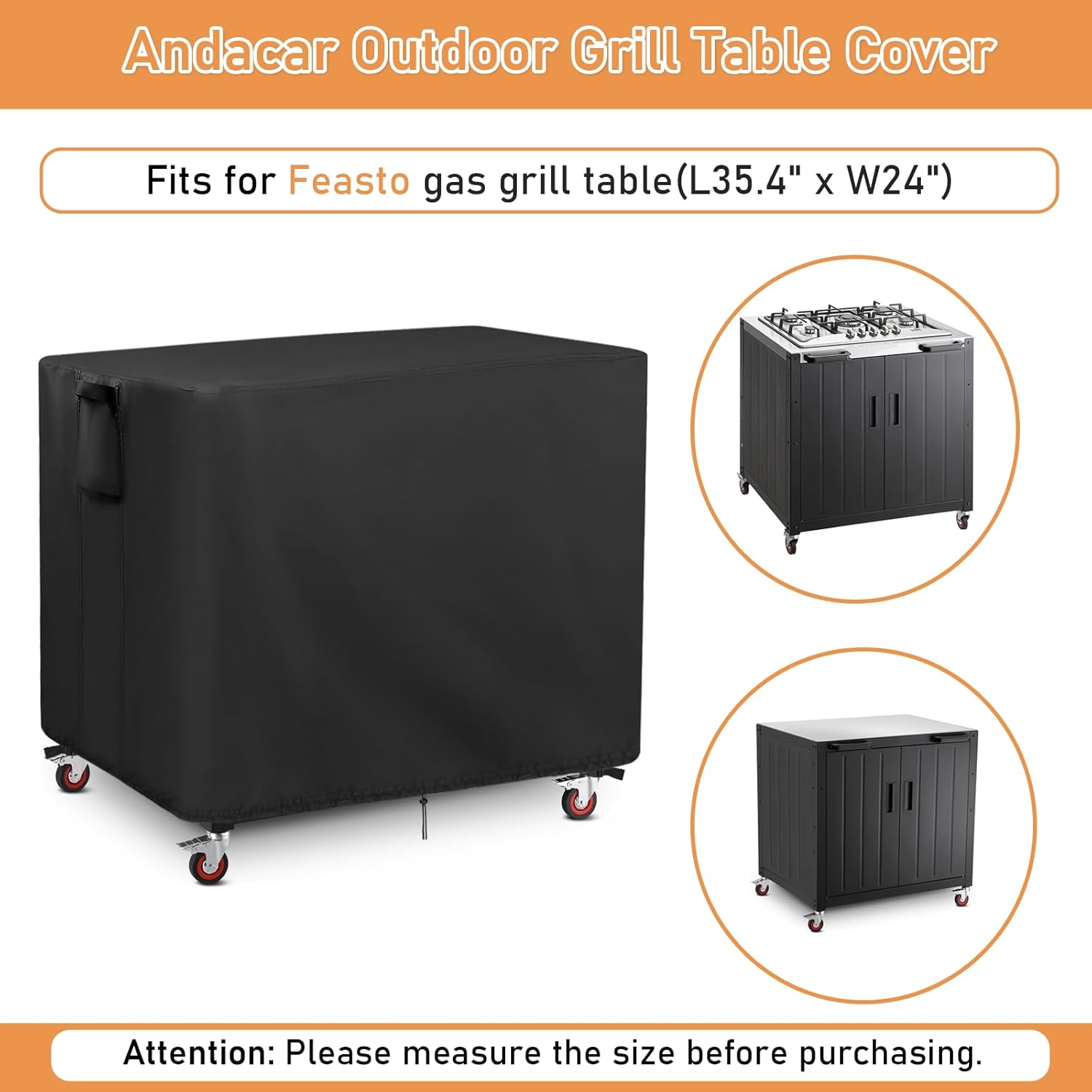 • Size: The gas grill cover is fit for Feasto gas grill table(36"L x 24"W x 36"H); Please measure the size before purchasing