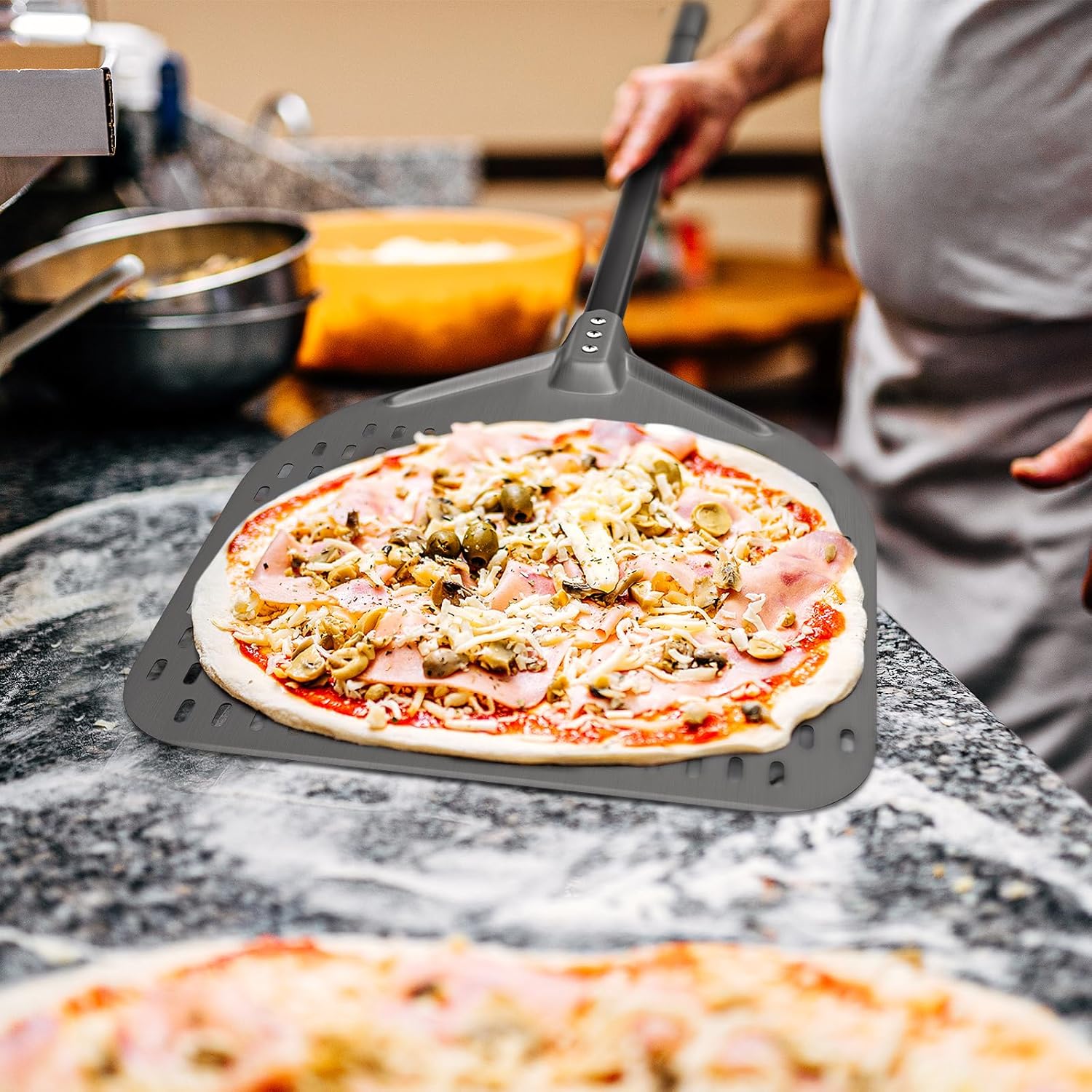 • 【PREMIUM QUALITY】Crafted from hard anodized aluminum, our pizza peel protects your dough from oxidation. The durable pizza paddle is designed to last 6 to 8 times longer than standard pizza peels, ensuring you have a reliable kitchen tool for years to come