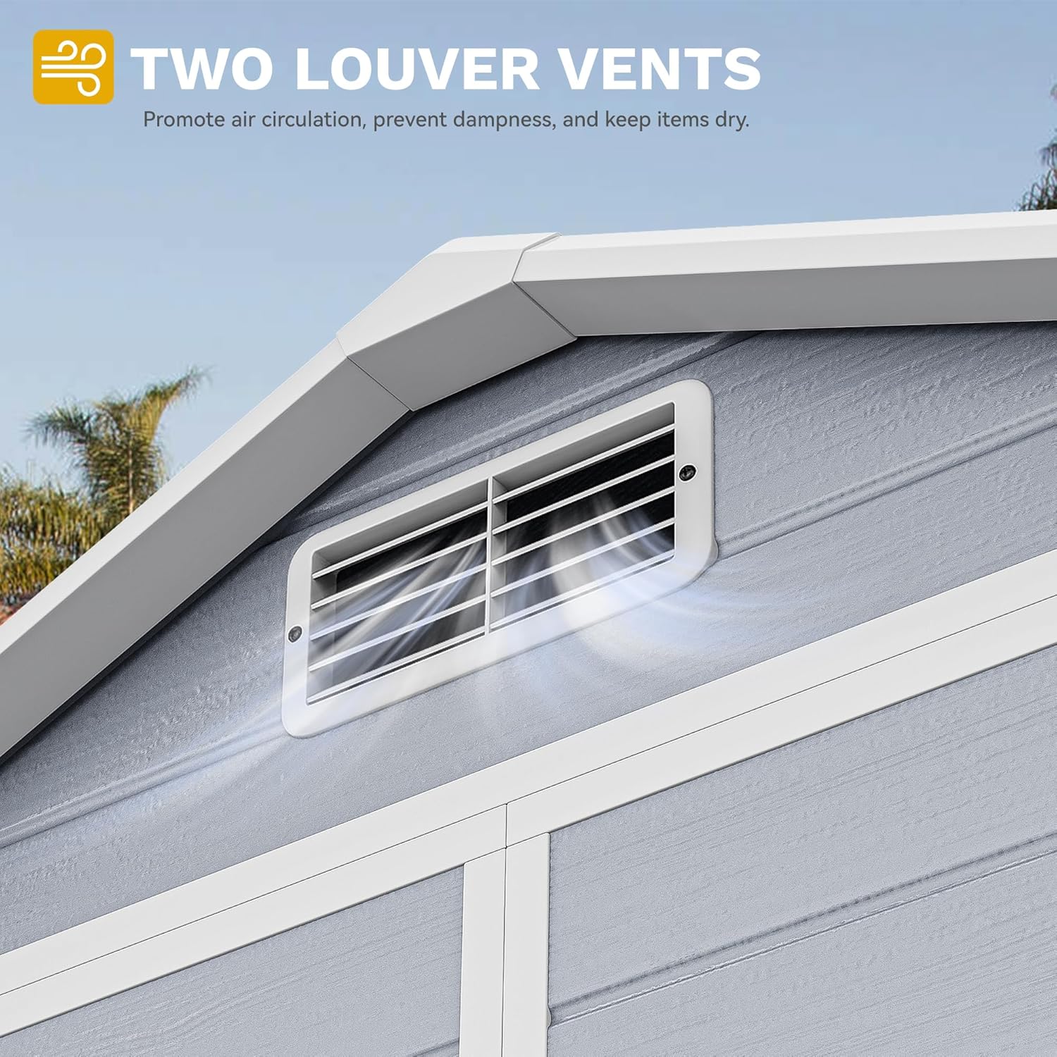 • [Optimal Ventilation & Transparency] The garden tool storage features a lockable door that prevents theft and protects stored items; The transparent side windows allow natural light to illuminate the interior, while the louvered vents promote air circulation and prevent moisture buildup; The sloped roof facilitates drainage, prevents rainwater accumulation and extends the shed’s lifespan