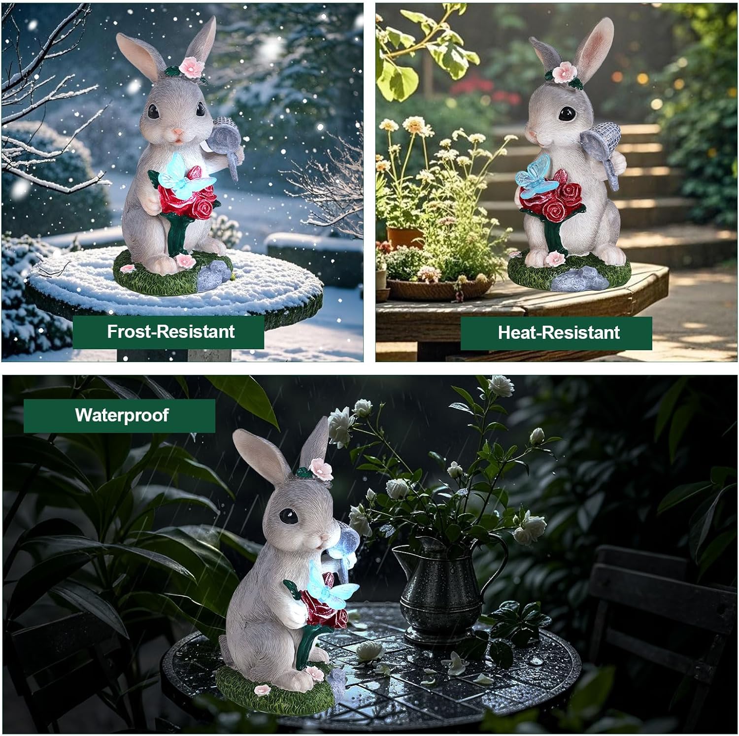 • Durable and Weatherproof Materials: Crafted from high-quality resin, our bunny garden statue is vibrant and intricately detailed. Equipped with UV-resistant coatings and an IP44 waterproof rating, it withstands rain, snow, and sun, ensuring long-lasting beauty for your outdoor decor.