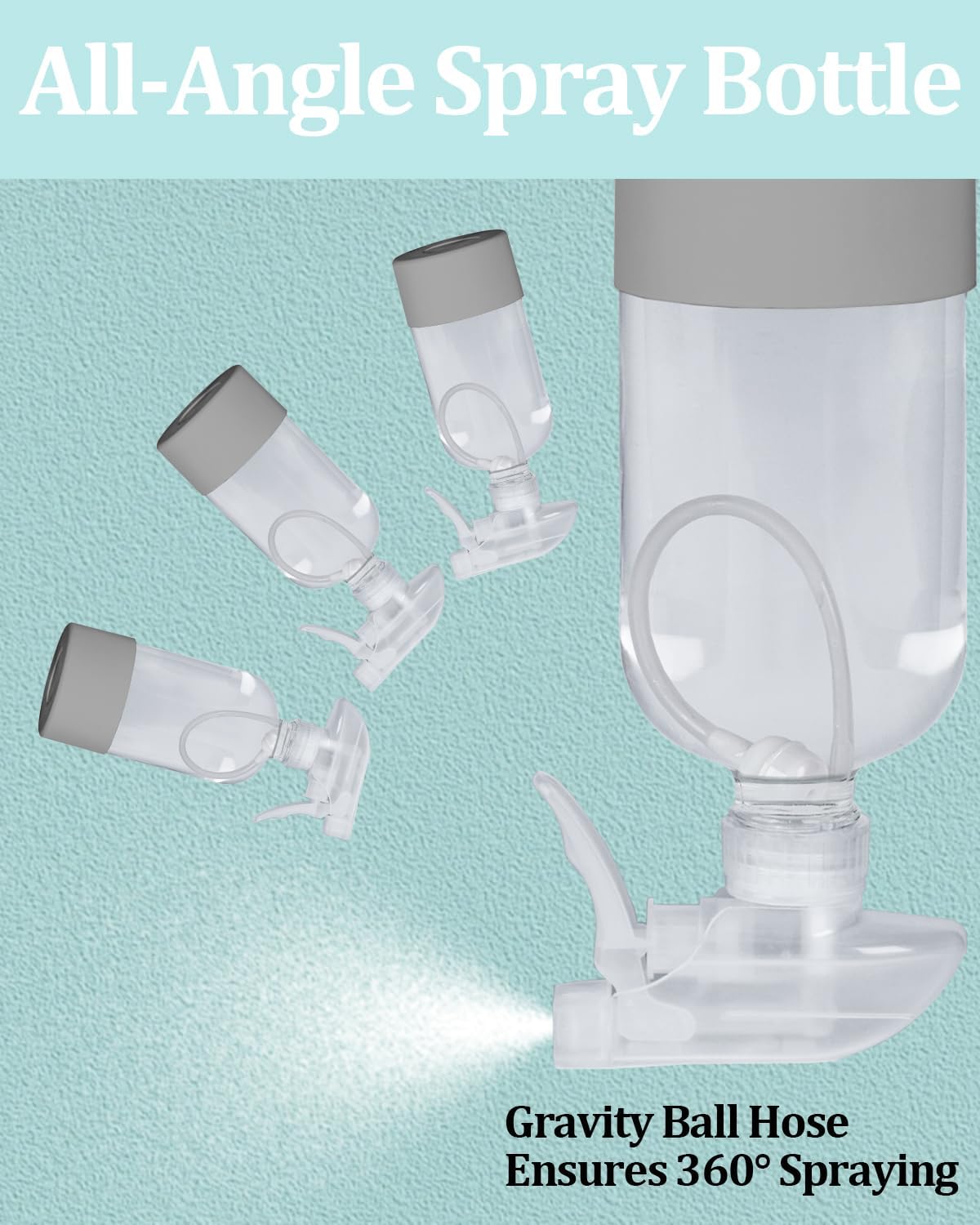 2 Pack 360° Glass Spray Bottles with Silicone Sleeve, 16 oz Empty Refillable Containers with Adjustable Spray Nozzles, Spray Bottles for Hair, Cleaning Solutions and Plants Grey