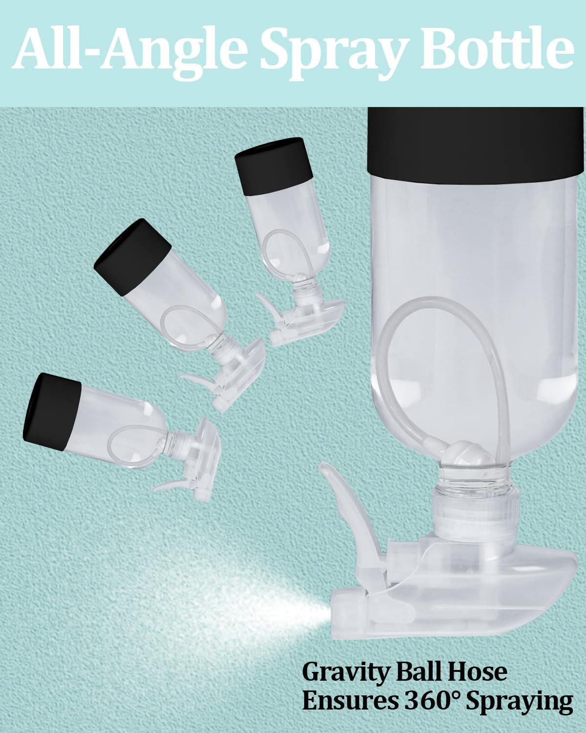 2 Pack 360° Glass Spray Bottles with Silicone Sleeve, 16 oz Empty Refillable Containers with Adjustable Spray Nozzles, Spray Bottles for Hair, Cleaning Solutions and Plants Black