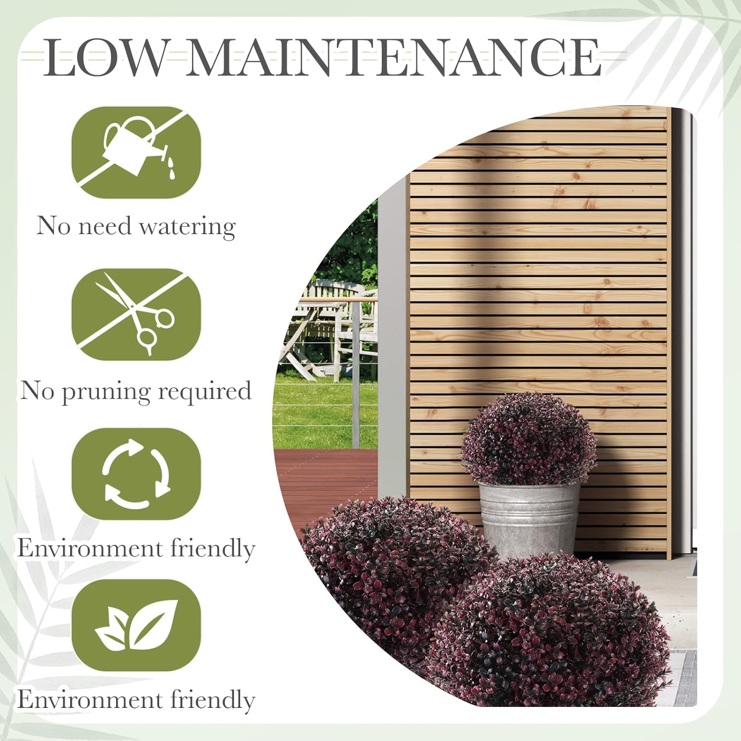 Yunlly 2 Pack 18" Artificial Boxwood Ball Bush Topiary Trees Fake Outdoor Plants, Realistic UV Resistance Faux Shrubs with Spike Greenery Topiary for Front Porch Garden Yard Patio Indoor (Dark Purple)